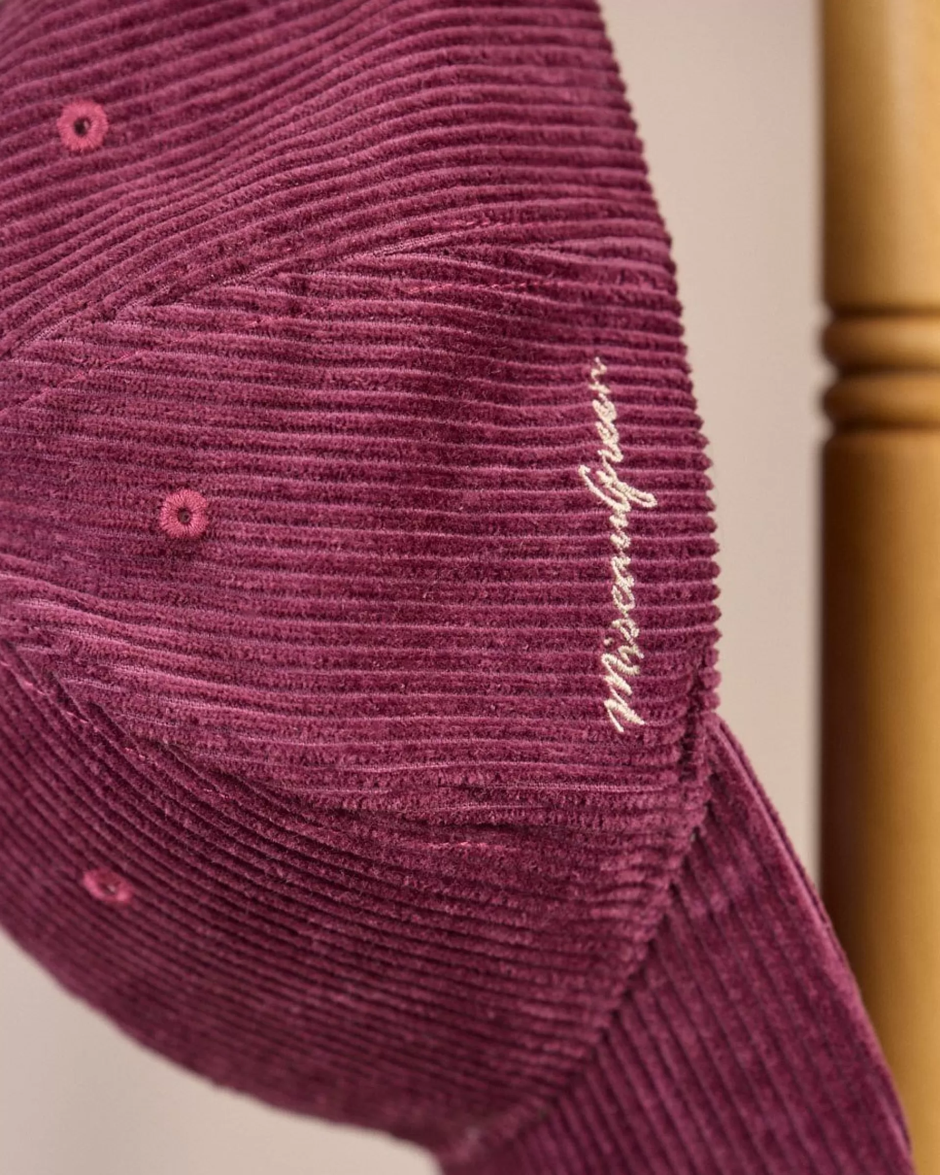 Restez à la pointe des tendances avec cette casquette violette en velours côtelé. Idéale pour la saison, elle est confectionnée en coton issu de l’agriculture biologique pour vous tenir chaud. Vous pouvez ajuster facilement le tour de tête grâce à sa fermeture réglable. Des œillets d’aération et une broderie Mise au Green complètent cet accessoire. Une fois adopté, il apportera une touche chaleureuse à vos tenues !