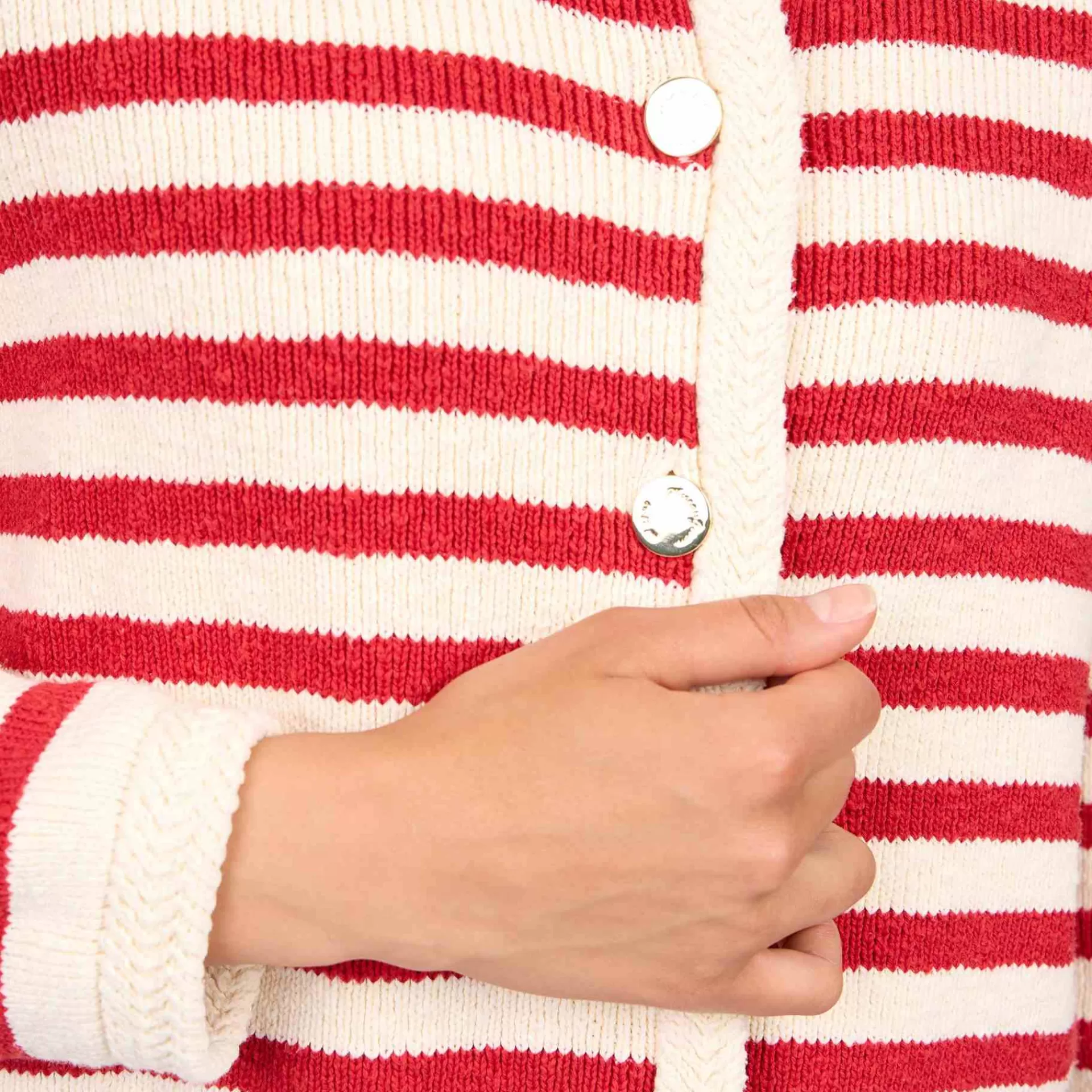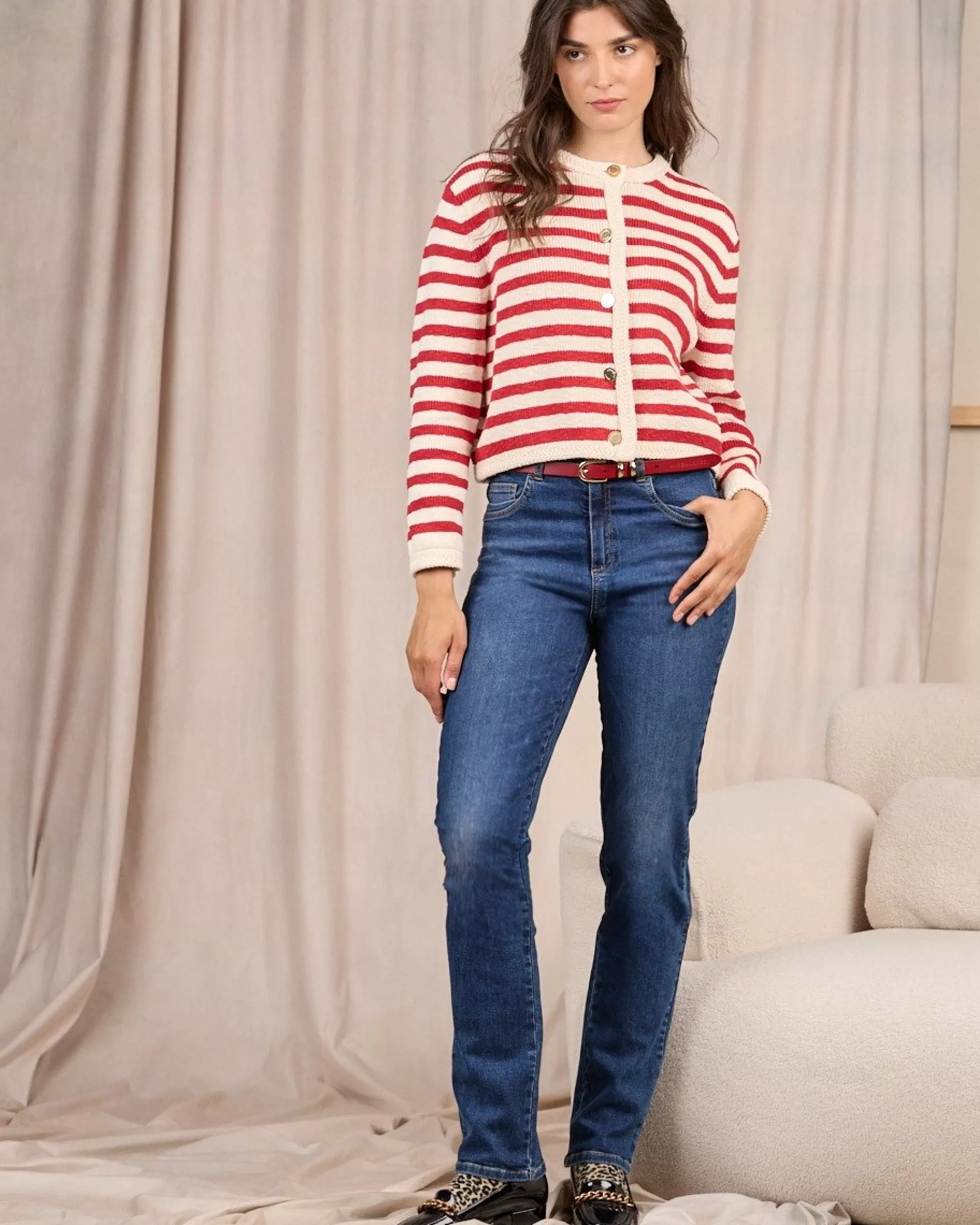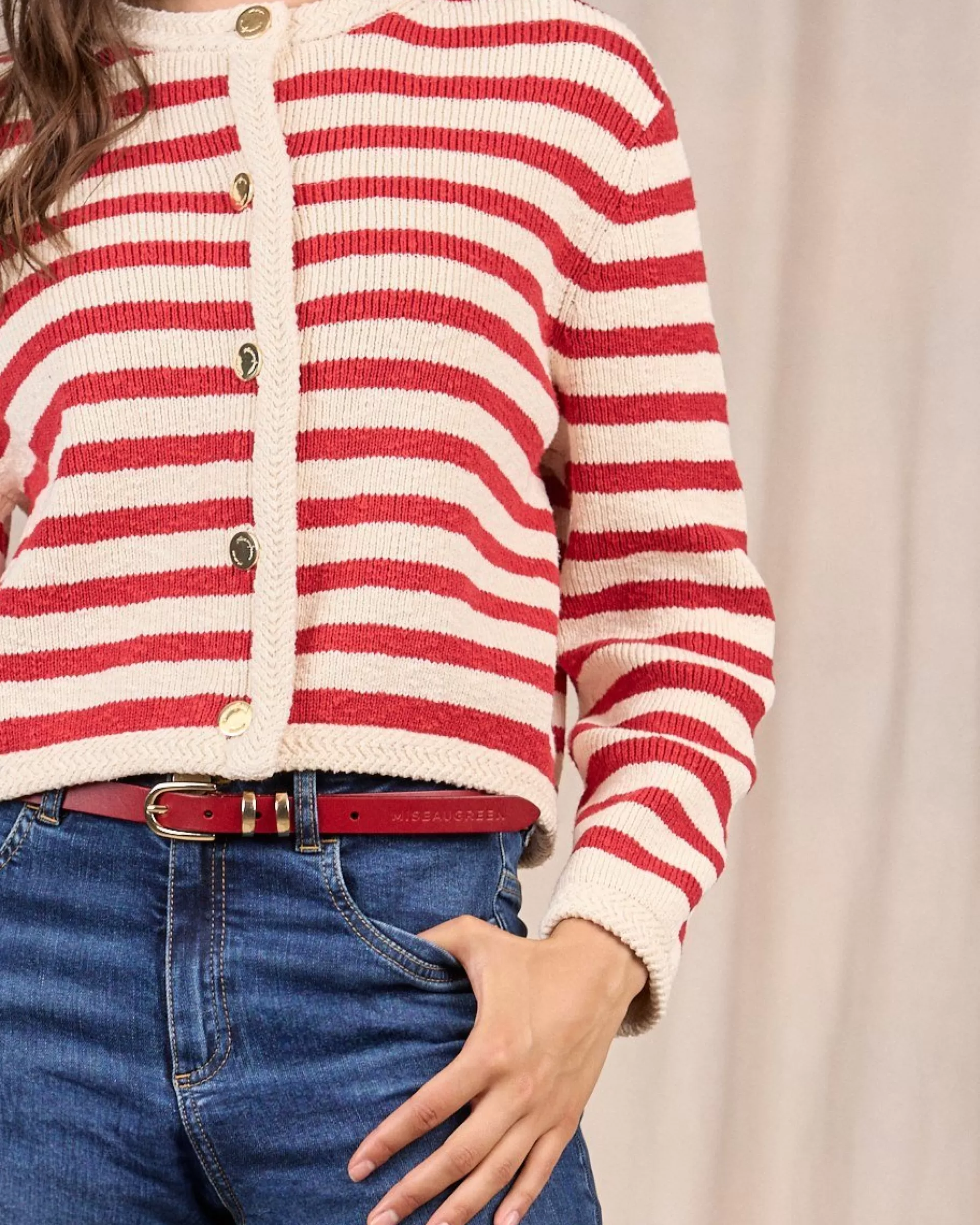 Inspiration marinière pour ce cardigan pour femme à rayures rouges ! Muni d’une fermeture à boutons dorés, il est synonyme de chic et d’élégance. Pour vous réchauffer en douceur, il est confectionné intégralement en coton. Des détails contrastés le long de la patte de boutonnage, à la base et aux poignets ainsi qu’une plaquette Mise au Green finalisent ce modèle féminin. Accordez-le avec un jean pour une tenue parfaite sur toutes les coutures !
