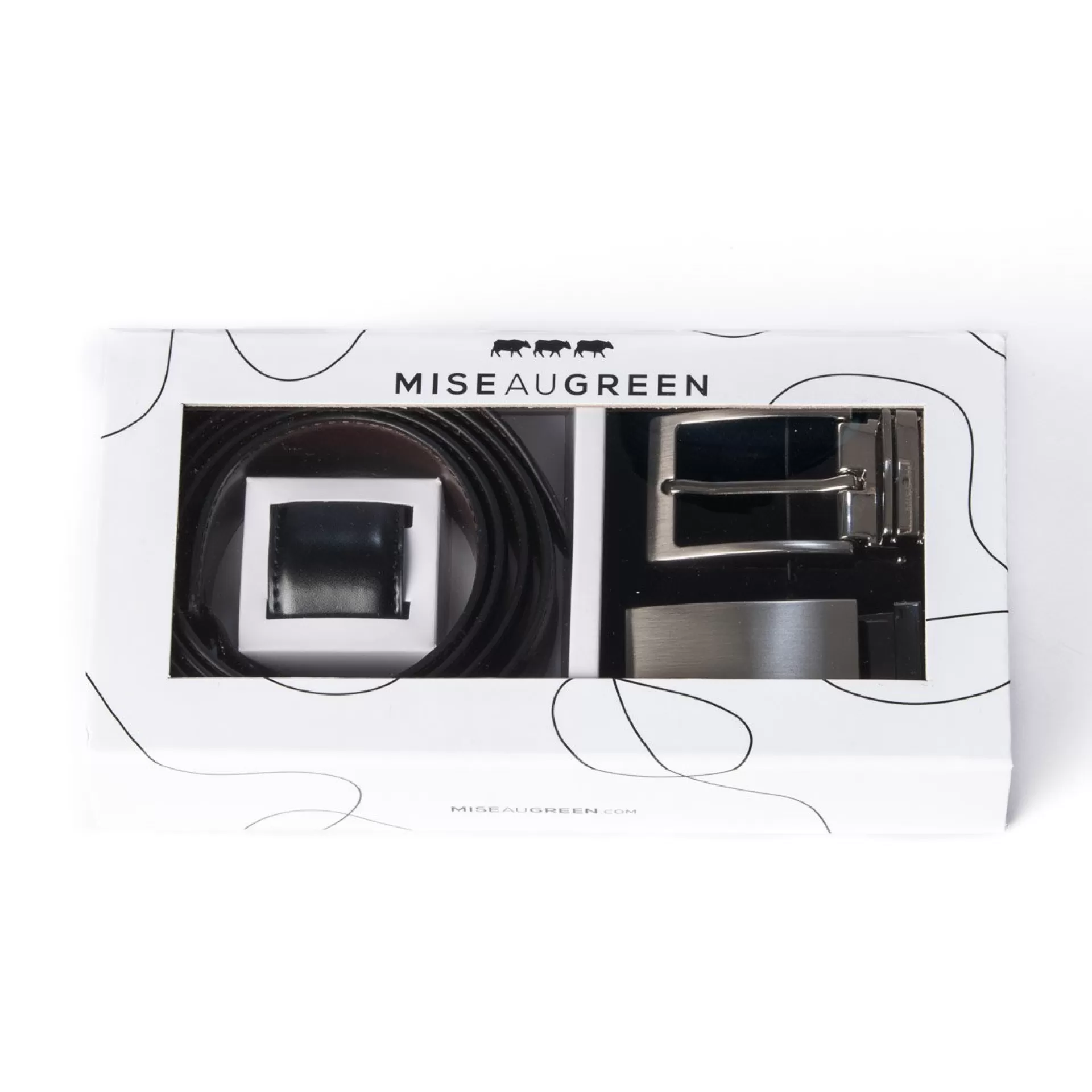 Soucieuse de vous proposer des vêtements et des accessoires intemporels qui vous accompagneront saison après saison en toutes occasions, notre marque a imaginé ce coffret ceinture et ses deux boucles de serrage. Cette ceinture homme en cuir noir finition glacé se dote d’une boucle classique à l’allure sophistiquée et d’une boucle automatique pour vous looks d’inspiration sport-chic. Toutes deux sont discrètement signées par notre marque. Détail élégant et discret, un embossage marque le cuir de notre logo « 3 petites vaches » devenu iconique.