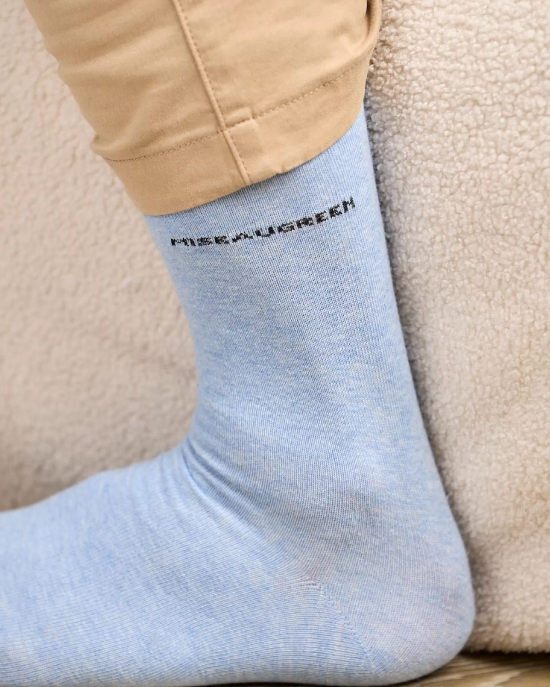 Avec sa teinte bleu, cette paire de chaussettes unie insuffle de la fraîcheur à vos tenues ! Cet accessoire comprend des bords-côtes élastiqués et une signature contrastée Mise au Green. Sa matière douce et résistante à base de coton procure un confort optimal au quotidien.