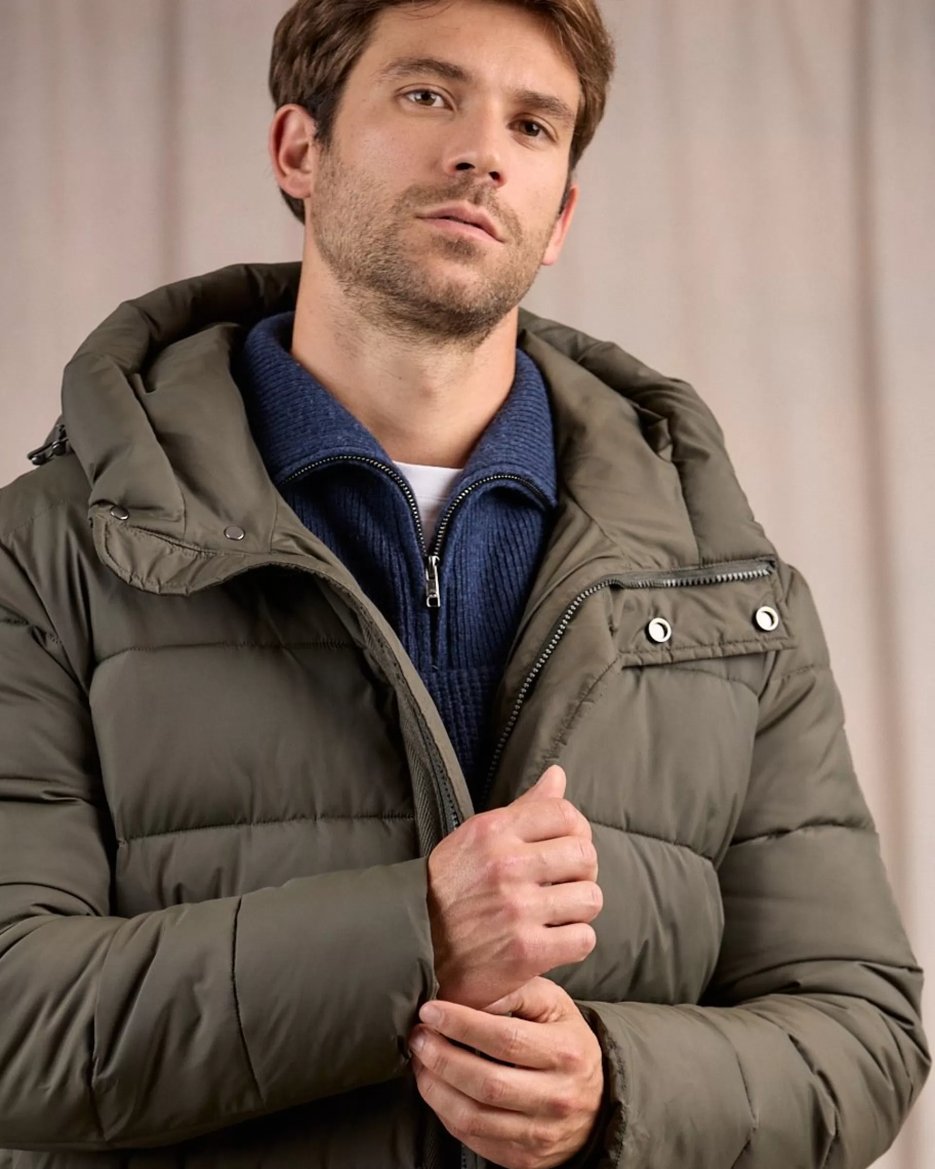 Notre doudoune longue est l’ultime investissement pour la saison ! À la fois fonctionnelle et minimaliste, cette pièce permet d’affronter les températures hivernales avec style. Son coloris kaki facile à porter, ses deux poches latérales et sa coupe droite confortable sont autant de raisons de l’adopter. Pour une chaleur optimale, elle associe un rembourrage chaud SORONA® à base de polyester recyclé avec une finition matelassée et déperlante. Une pièce phare du vestiaire à porter tous les jours en extérieur !