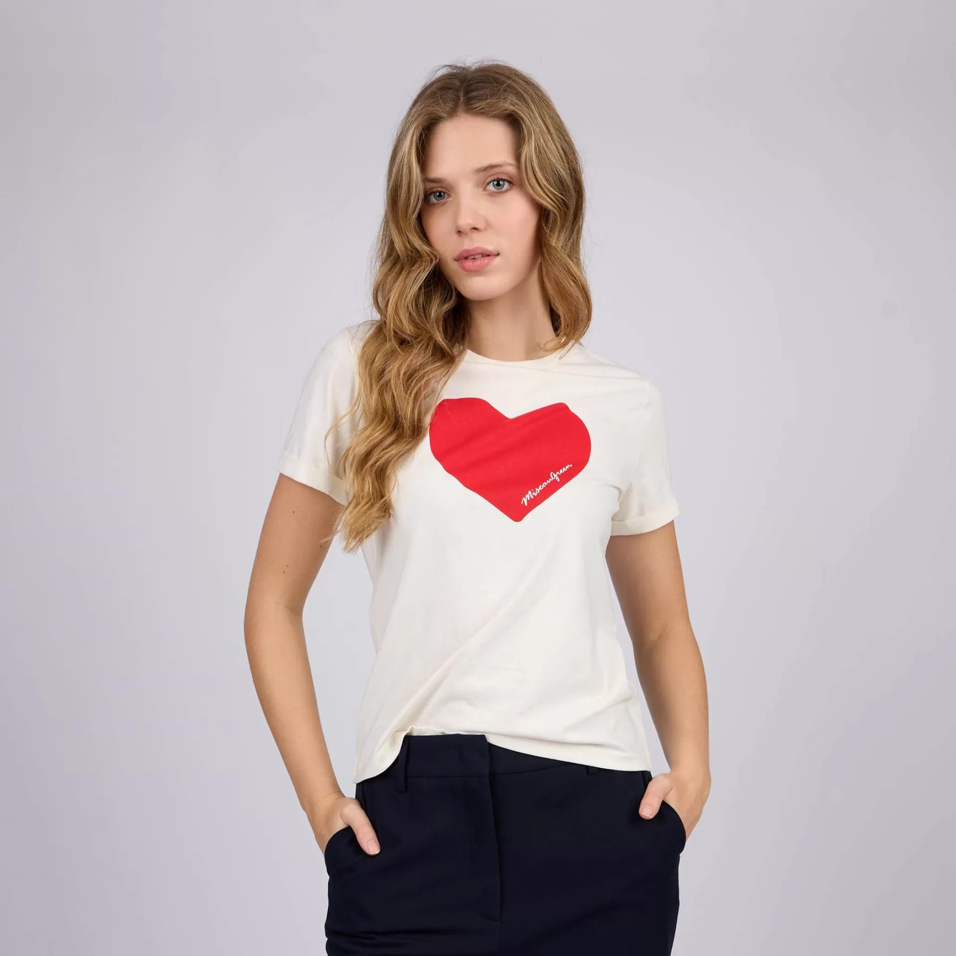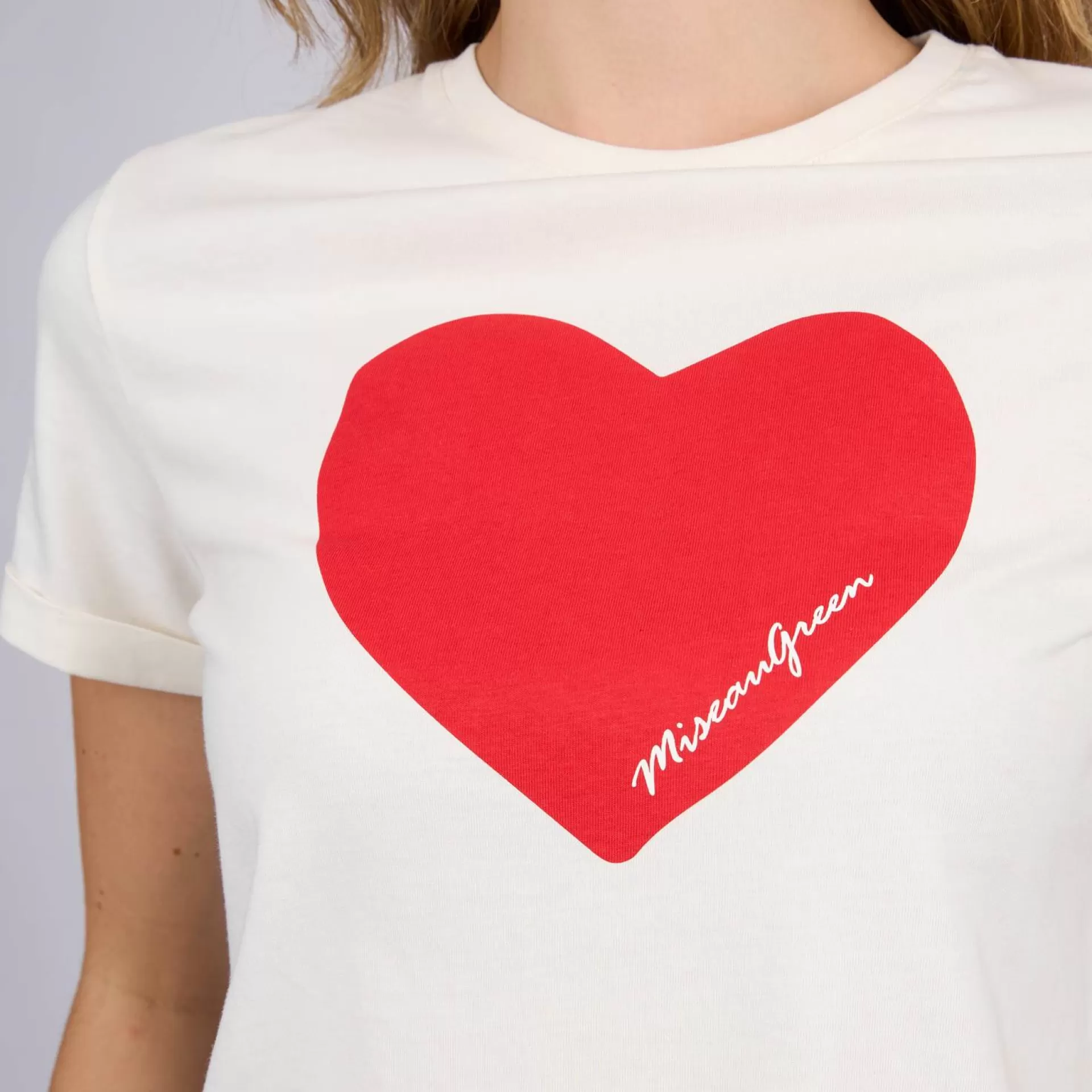 Un peu d’amour et de douceur avec ce tee-shirt à manches courtes pour femme. Avec ses détails soignés et sa sérigraphie « cœur » sur la poitrine, cette pièce blanche égaie votre style et s’adopte sans effort. Réalisée en coton issu de l’agriculture biologique, elle garantit votre confort en toute saison. Un col rond et des manches retroussées ponctuent son design décontracté.