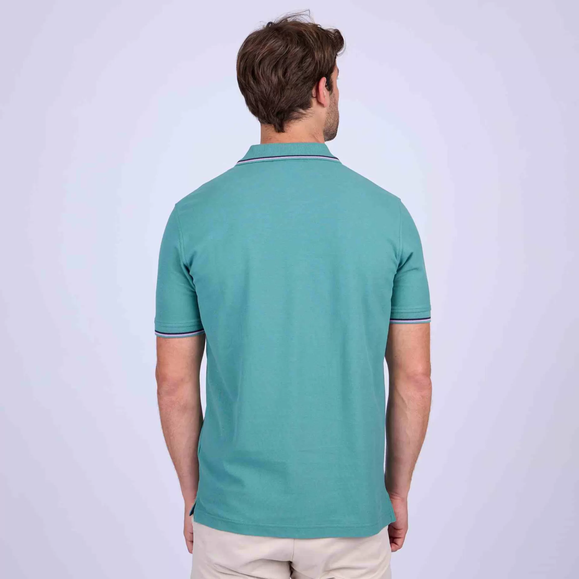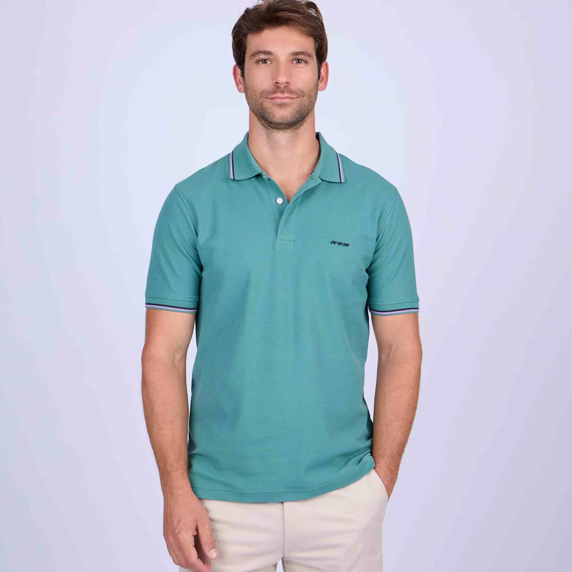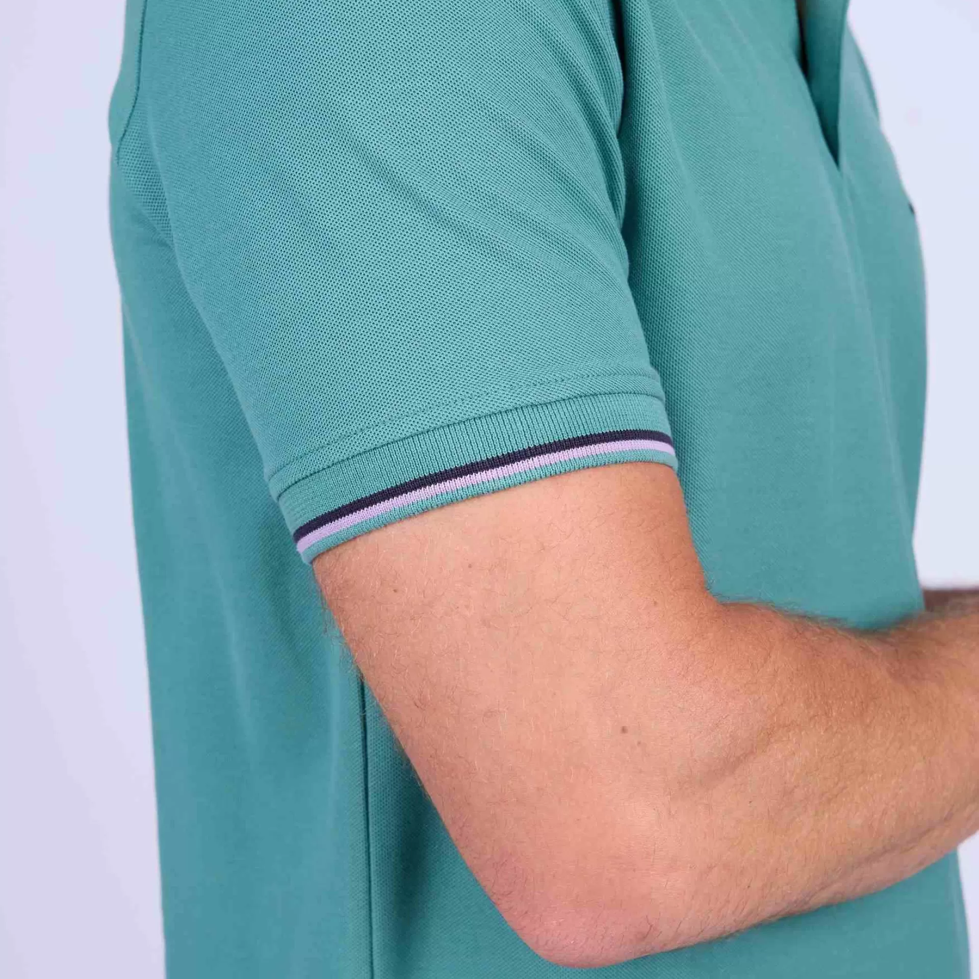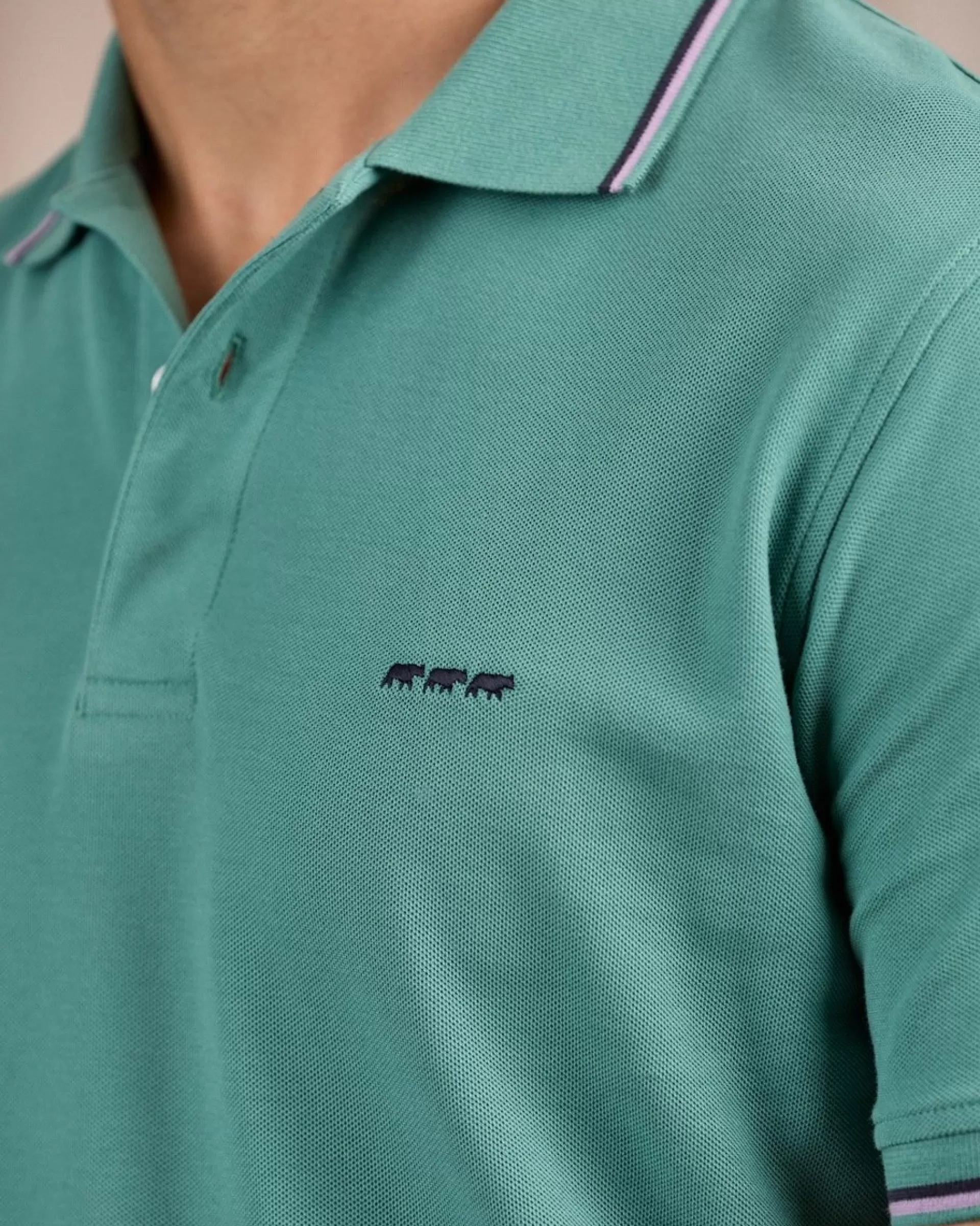 Sublimez votre allure avec ce polo à manches courtes. Avec son coloris vert colvert et ses bord-côtes rayés et contrastés au niveau du col et des manches, il ne passera pas inaperçu. Son col boutonné, sa coupe droite et sa broderie « 3 vaches » sur la poitrine finalisent le design de ce modèle sportif. Grâce à son tissu en coton, vous serez à l’aise tout au long de la journée. Un modèle exclusif à ne pas manquer !