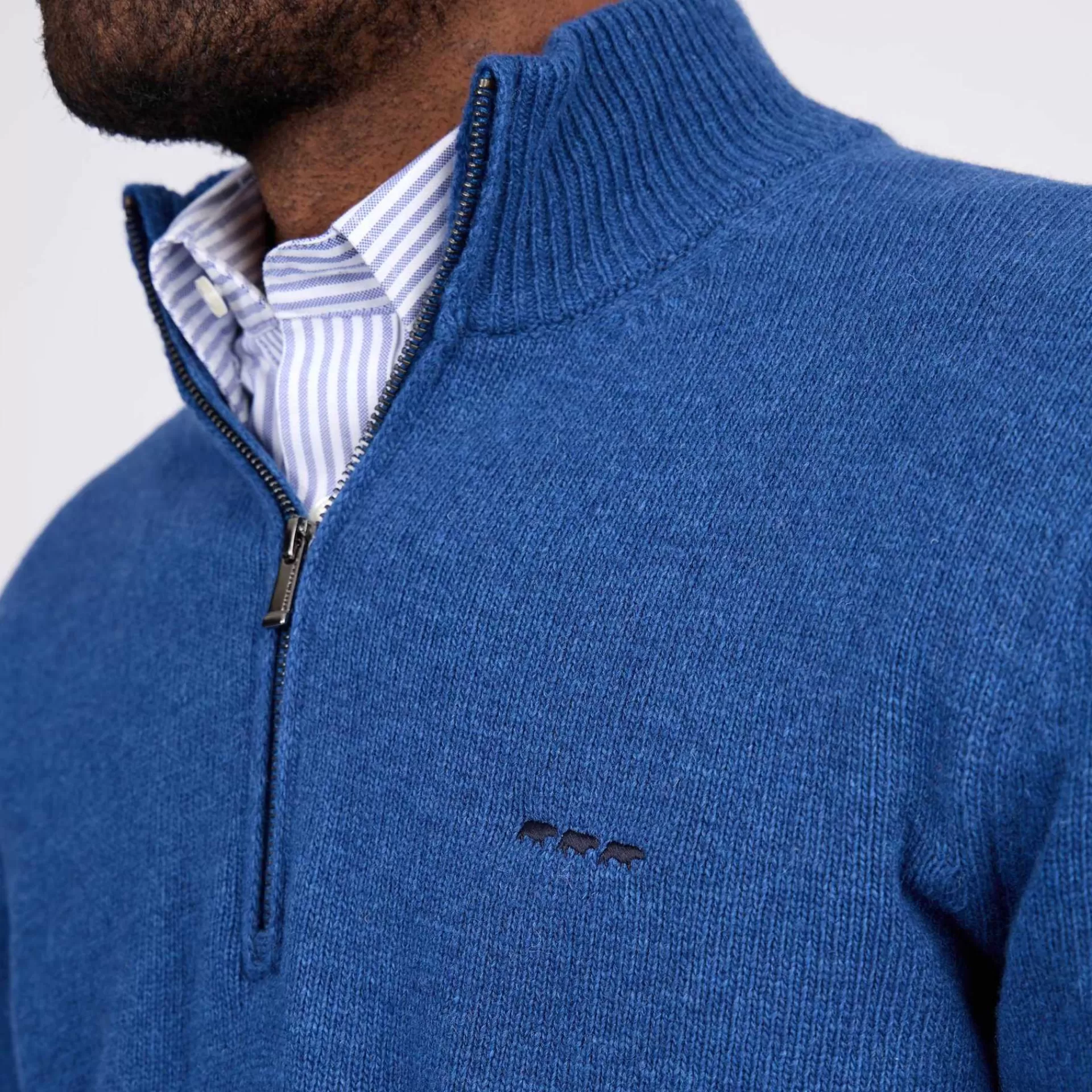 Ce pull à col zippé est un incontournable du vestiaire masculin ! Mélange de laine et de polyamide, il offre confort et chaleur en toutes circonstances. Des finitions côtelées au niveau des poignets, de la basse et du col complètent ce modèle tendance. Décliné dans un coloris bleu indigo, il dynamise votre allure et se porte facilement en superposition pour mettre en valeur votre tee-shirt ou votre chemise. Pour des looks décontractés, laissez-vous séduire par ce basique !