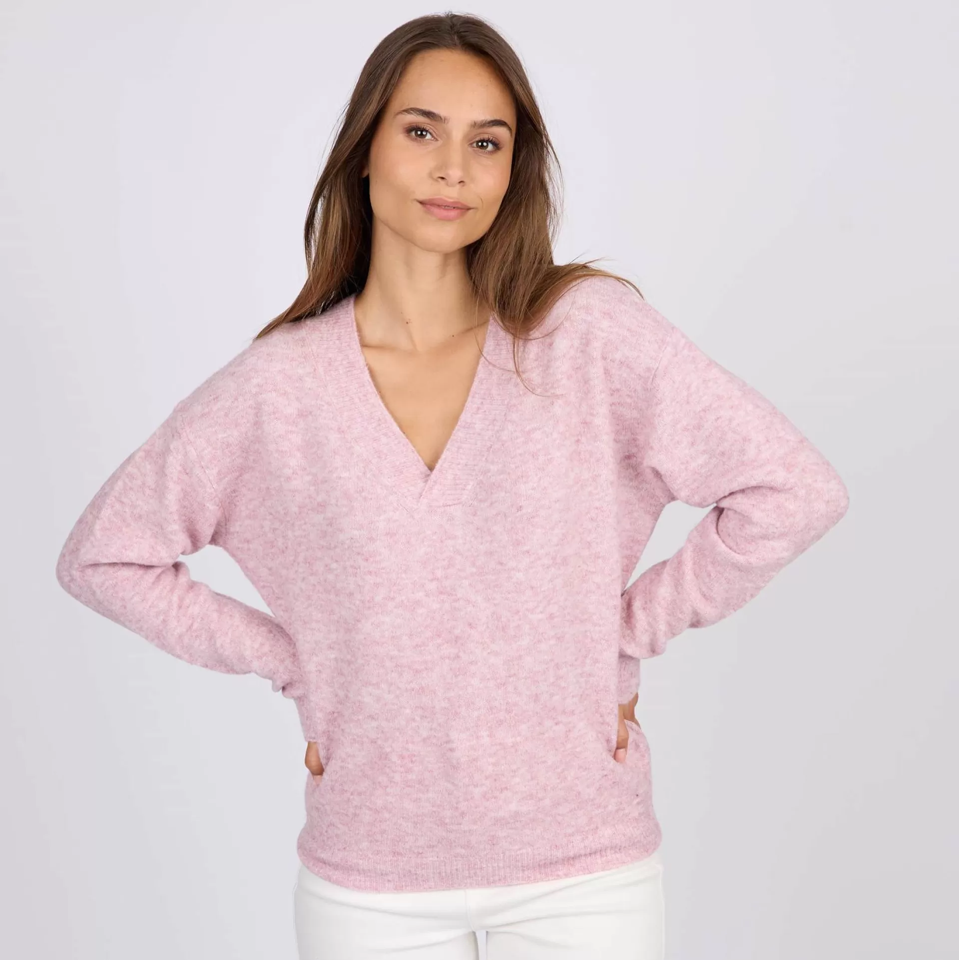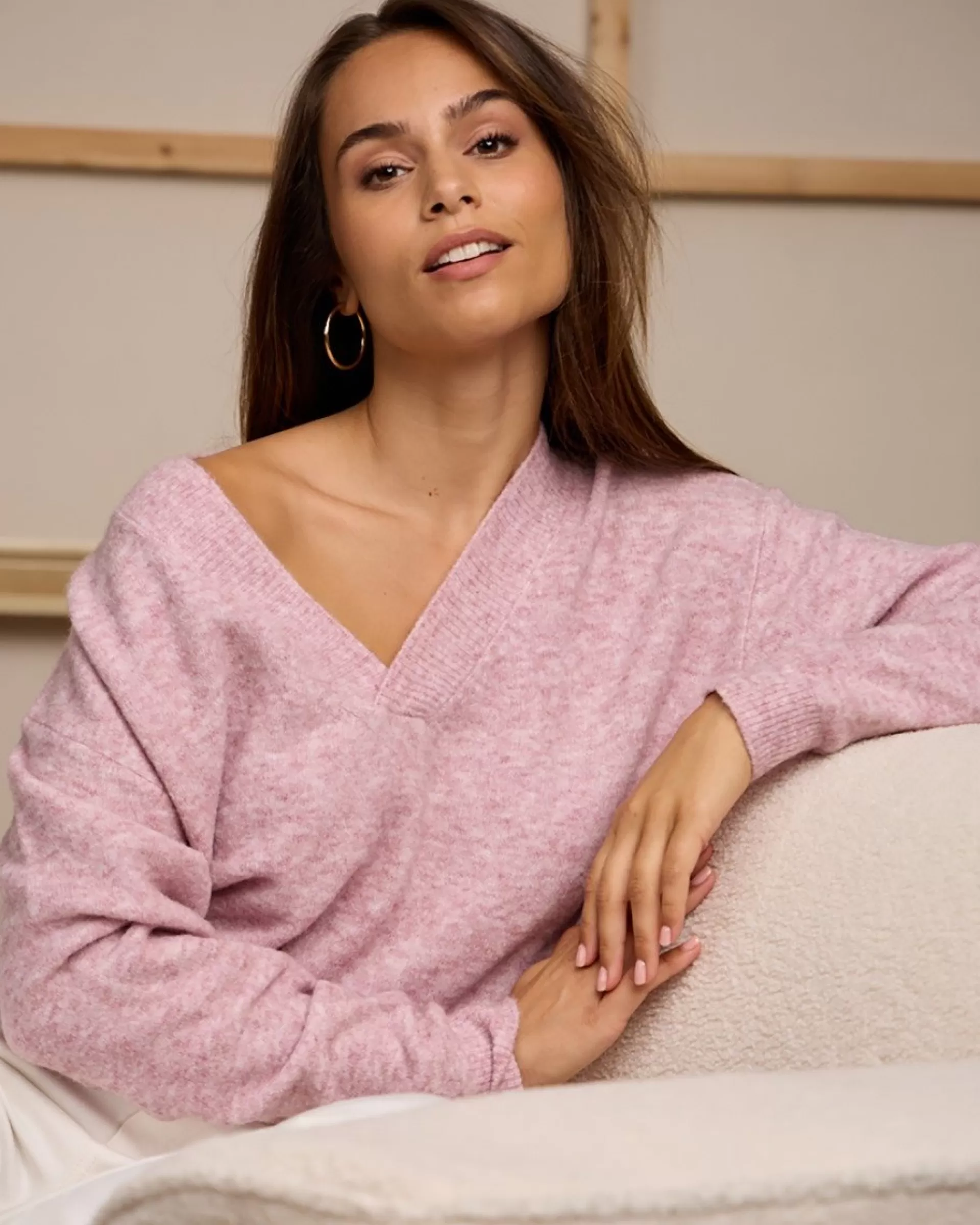 Avec sa large encolure en V, ce pull à manches longues pour femme garantit une élégance en toutes circonstances ! Mise au Green revisite cette pièce unie en l’habillant de détails côtelés, d’un coloris rose clair facile à vivre et d’une coupe ample pour une allure décontractée. Pour vous assurer confort et chaleur, elle est réalisée dans une maille douce à base d’acrylique et de laine. Soigneusement conçu, ce haut est parfait pour la saison !