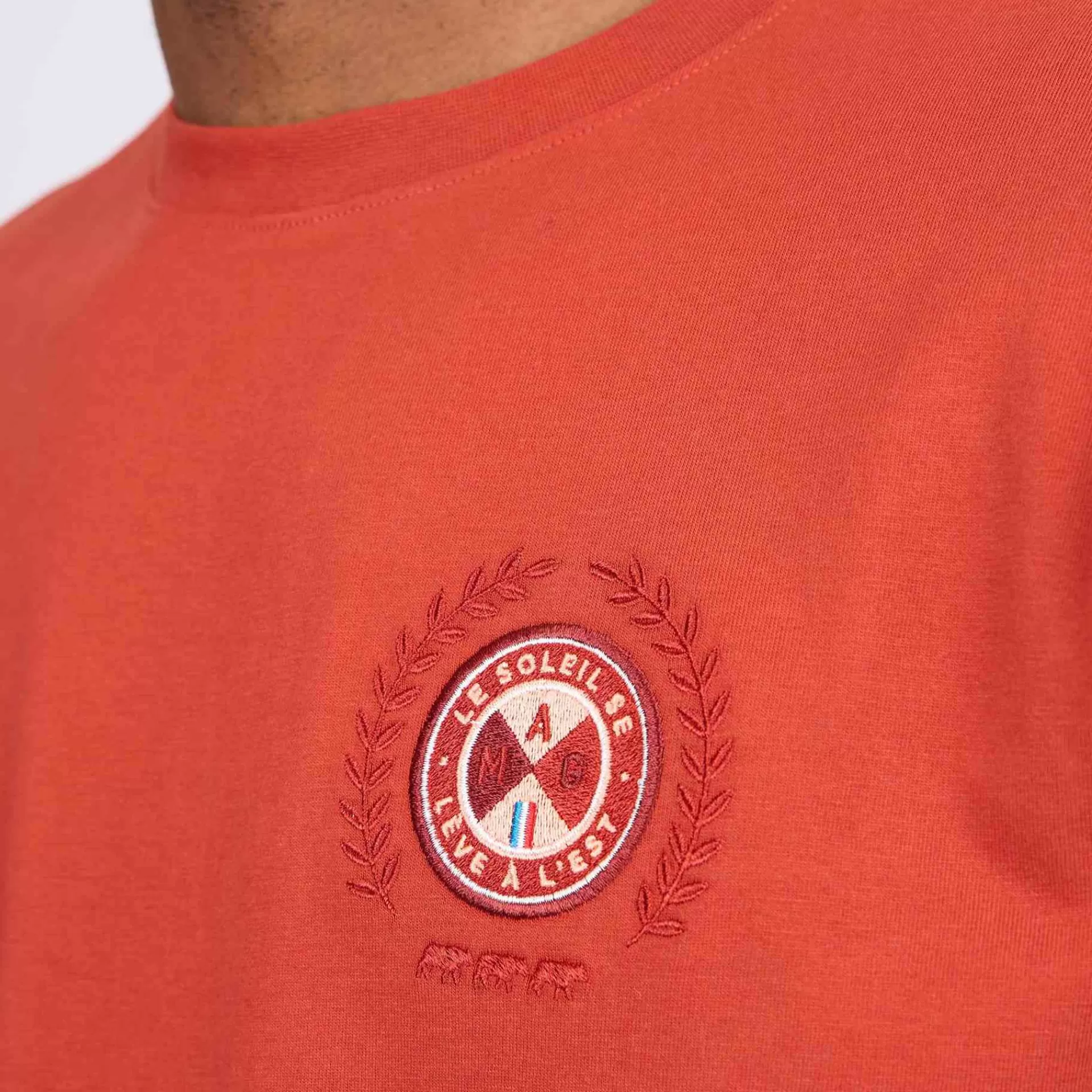 Un patch brodé Mise au Green exclusif s’invite sur ce tee-shirt à manches courtes ! Réalisé à 100 % en coton, ce basique du vestiaire masculin est synonyme de confort et de durabilité. Mixez son coloris terracotta avec n’importe quel pantalon de votre collection pour une tenue décontractée et soignée. Ce modèle uni présente un col rond et une coupe droite.
