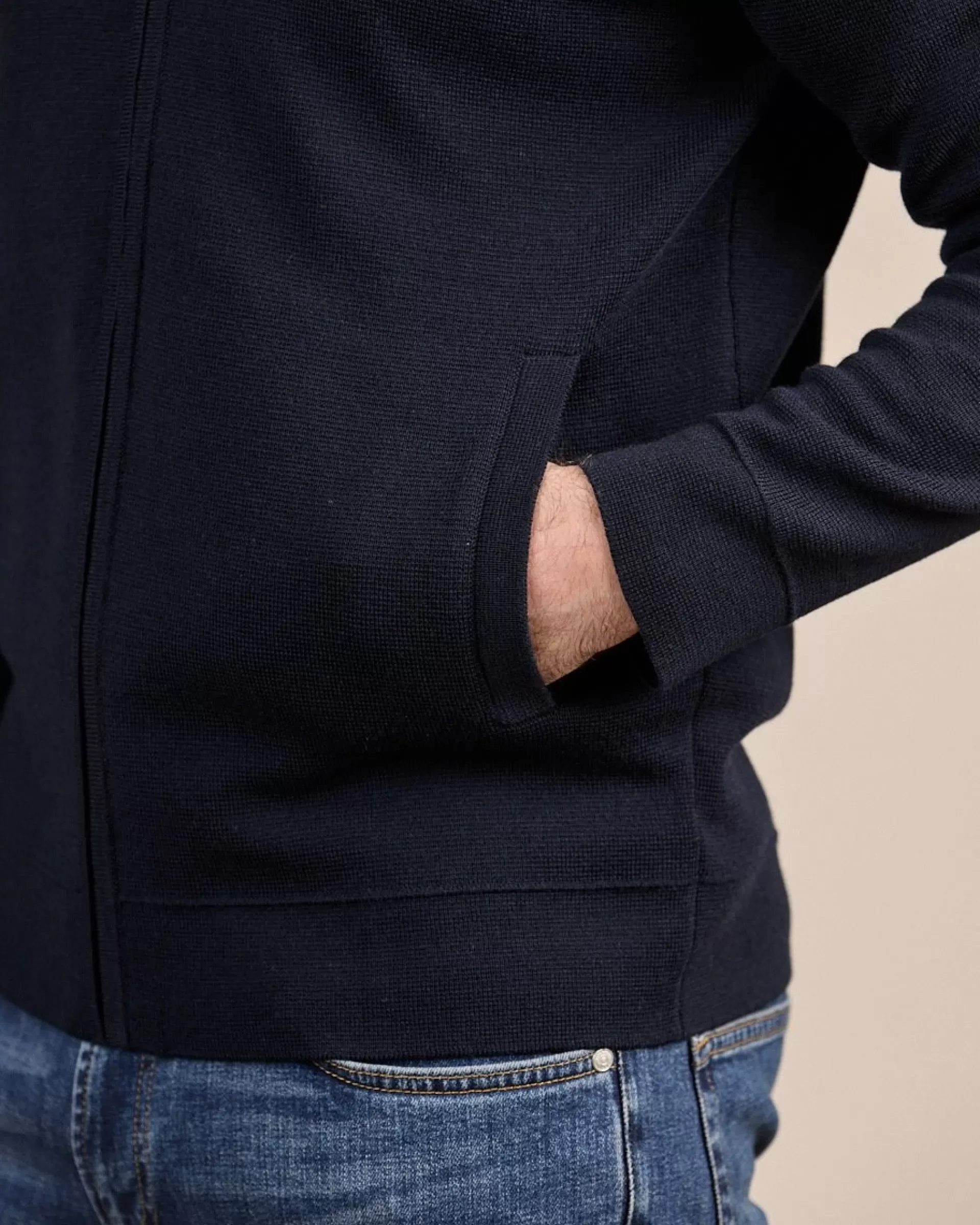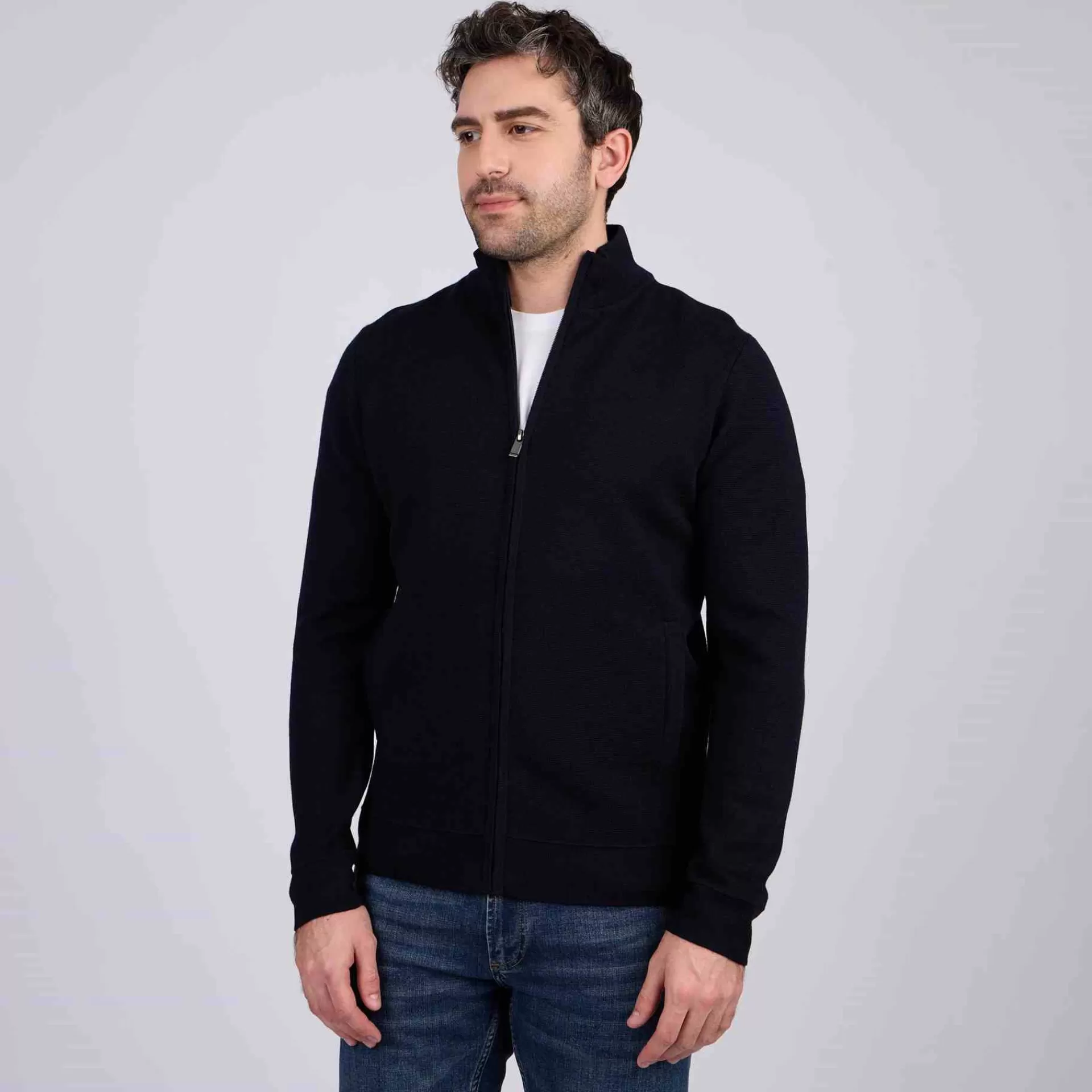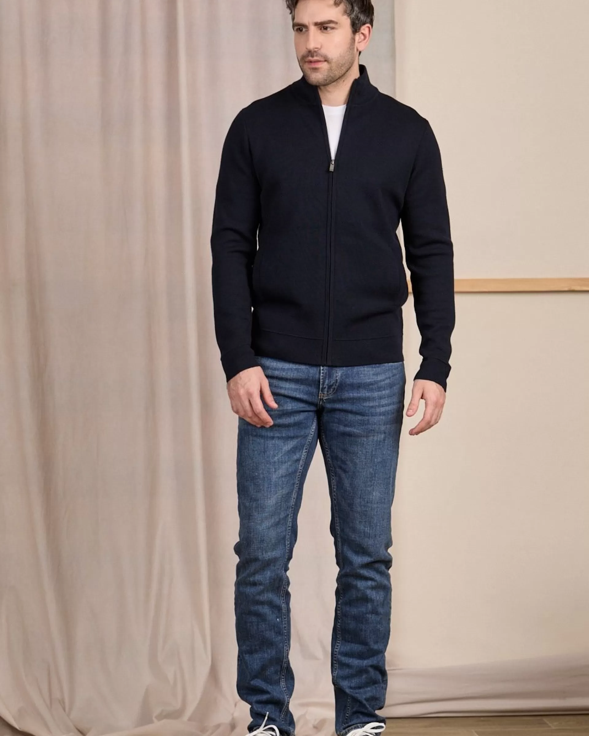 Complétez toutes vos tenues avec ce cardigan bleu marine pour homme ! Chic et décontracté, il s’associe facilement avec n’importe quel pantalon. Pour garantir chaleur et confort, il est réalisé dans un mélange d’acrylique et de mérinos. Son design minimaliste est rehaussé par un col camionneur, une coupe droite, une fermeture zippée et deux poches. Des détails aussi fonctionnels que soignés pour une allure sans fausse note !