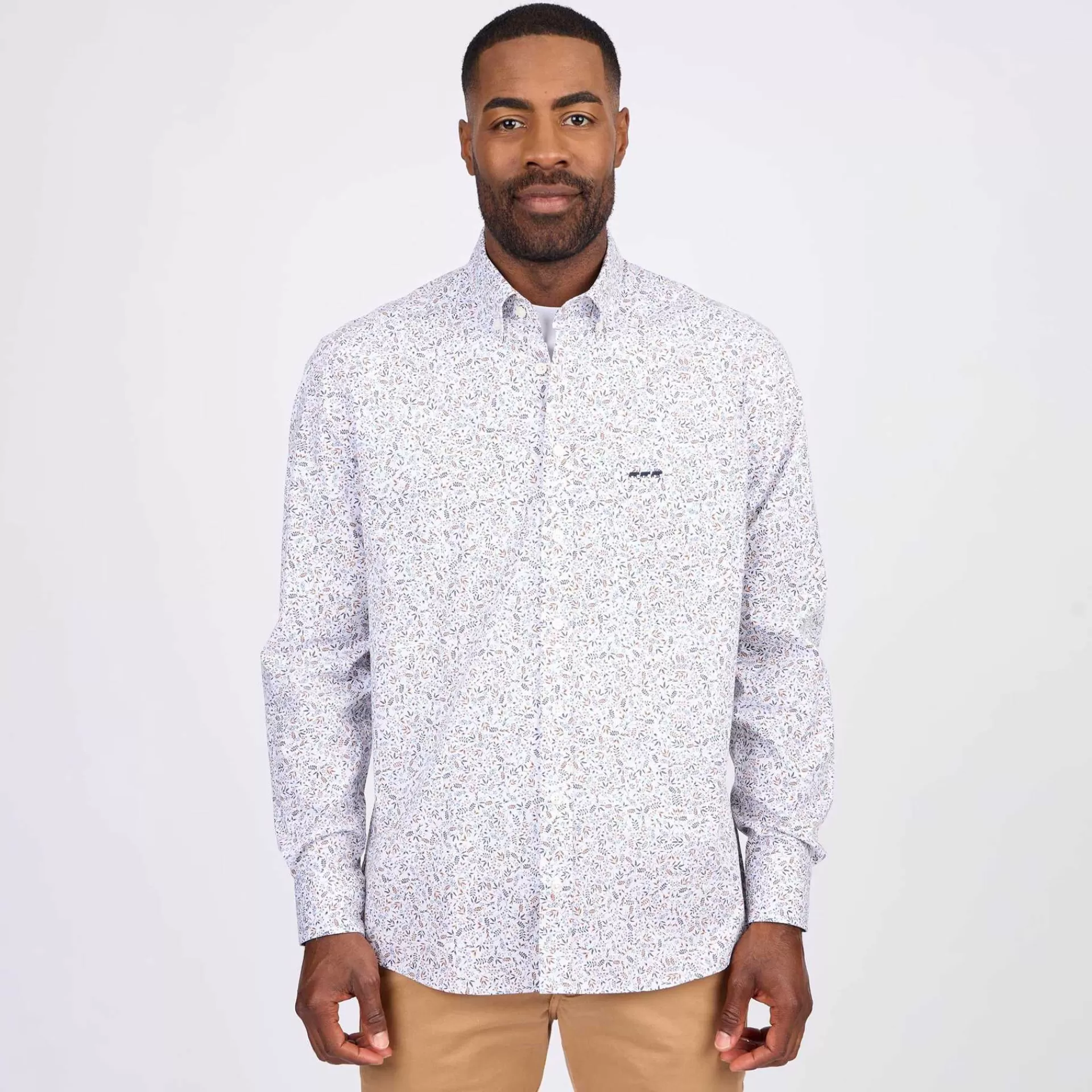 Quelle que soit l’occasion, cette chemise pour homme fera sensation ! Son délicat imprimé feuillage sur fond blanc apportera une touche de fraîcheur à votre allure. Pour que vous soyez à l’aise au quotidien, elle est fabriquée en coton avec une pointe d’élasthanne. Un col boutonné, une poche plaquée sur la poitrine et une broderie « 3 vaches » subliment son design tendance. C’est la pièce maîtresse pour des tenues à la fois chics et décontractées !