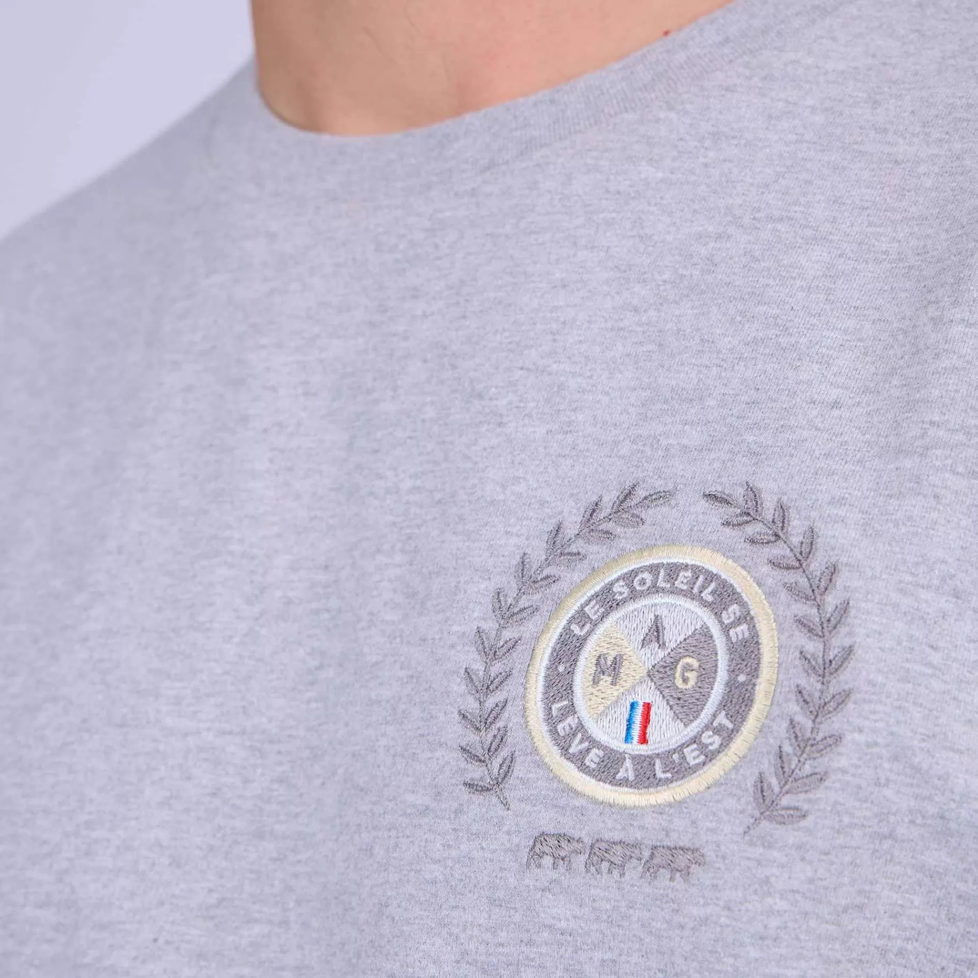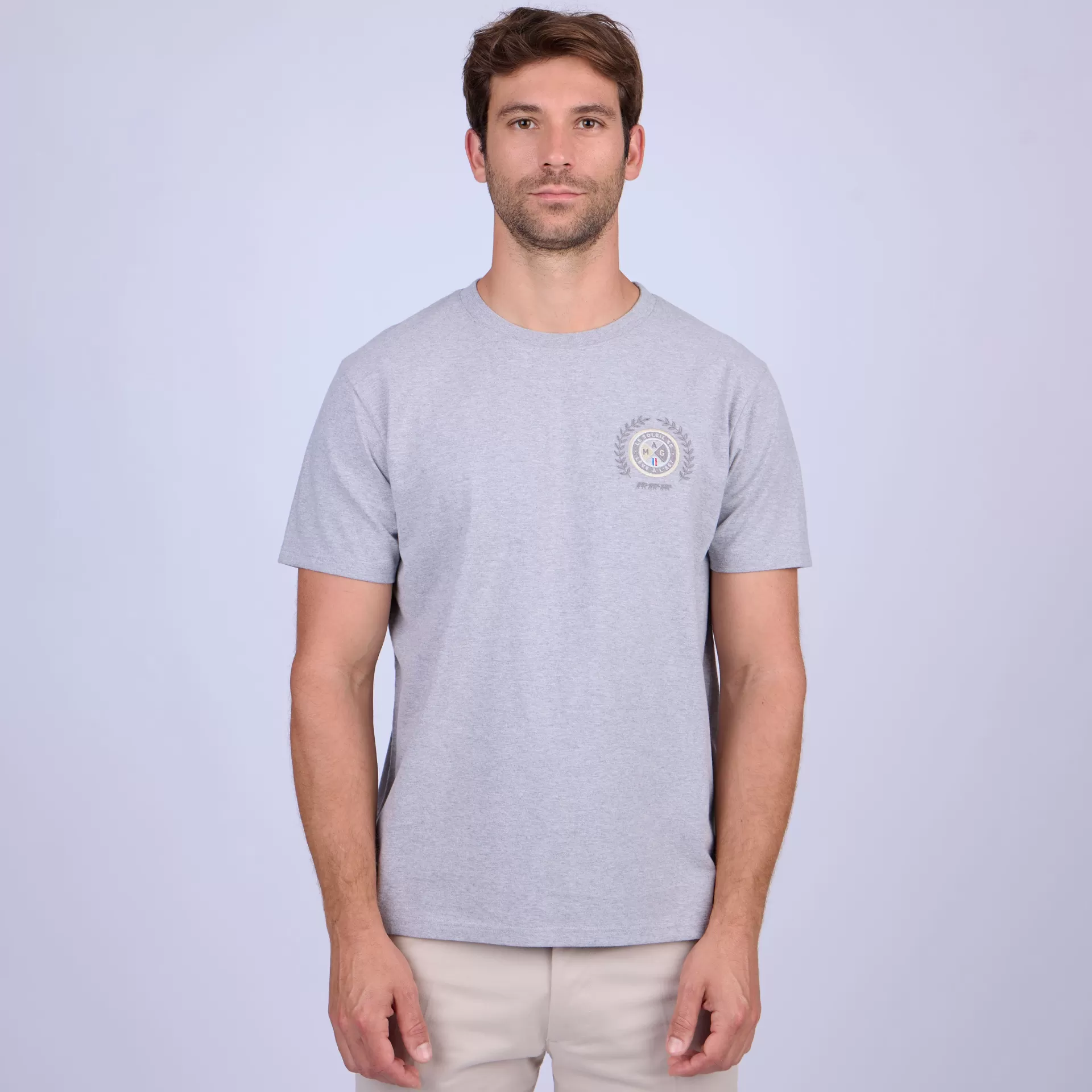 Un patch brodé Mise au Green exclusif s’invite sur ce tee-shirt à manches courtes ! Réalisé à 100 % en coton, ce basique du vestiaire masculin est synonyme de confort et de durabilité. Mixez son coloris gris chiné avec n’importe quel pantalon de votre collection pour une tenue décontractée et soignée. Ce modèle uni présente un col rond et une coupe droite.