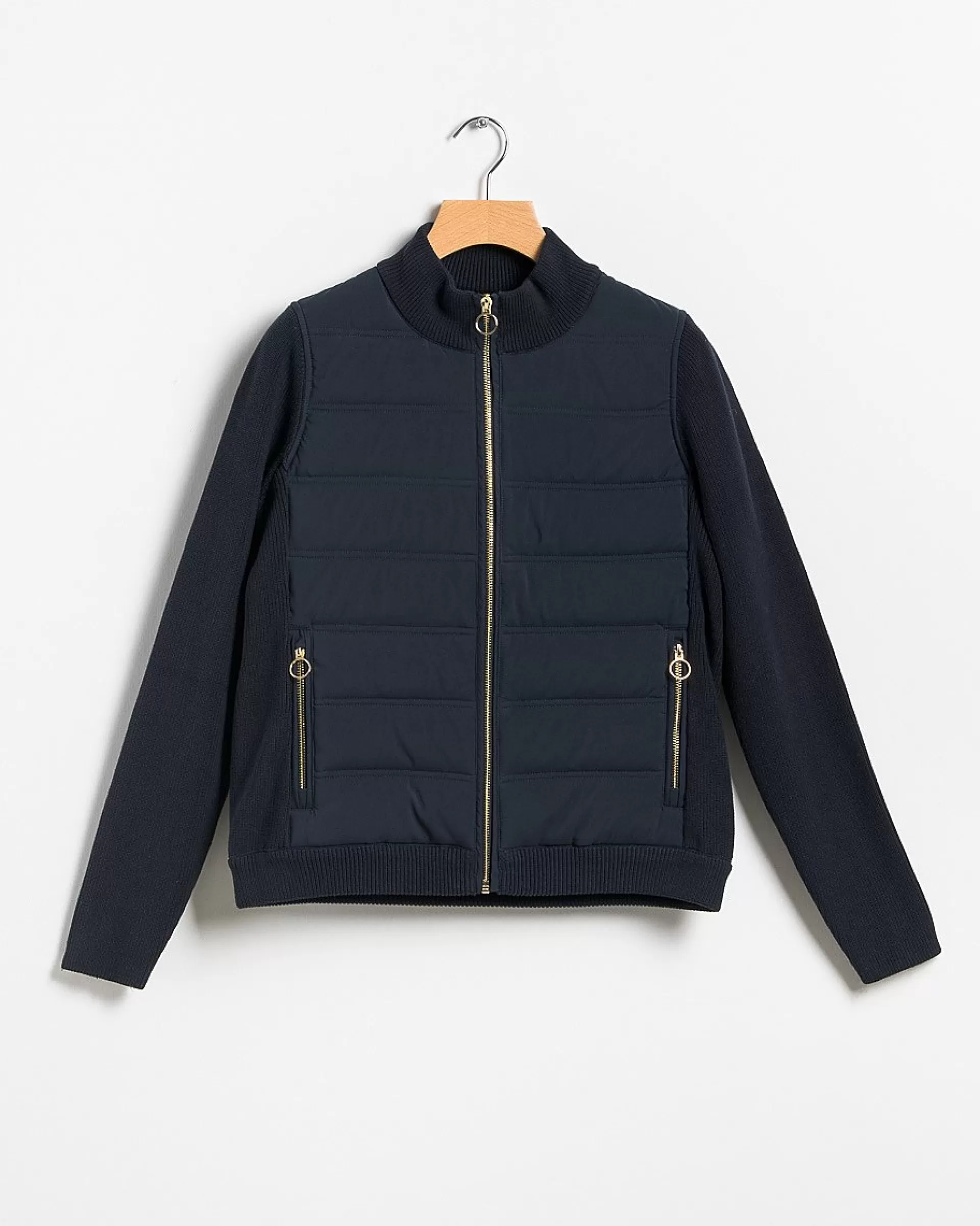 Facile à porter en cardigan ou en veste selon les températures, cette pièce est la promesse d’un look urbain sans concession. Dotée d’un design bi-matières, elle allie le confort d’une maille en coton tricoté à la chaleur d’un matelassage en polyester. Des poches latérales zippées, un col montant en bord-côtes et un zip doré lui confèrent un style unique et moderne. Actualisez votre vestiaire avec ce modèle chic et isolant !