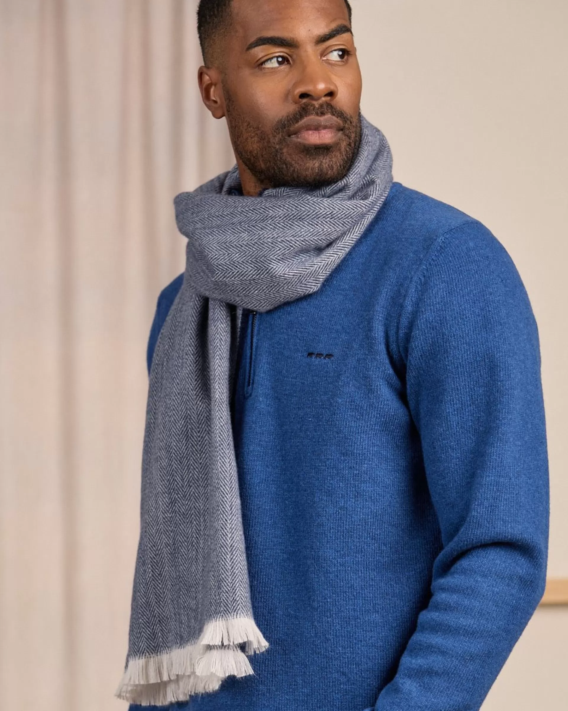 Des motifs chevrons animent cette écharpe pour homme Mise au Green. Avec sa maille en polyester recyclé, elle procure réconfort et chaleur lorsque les températures sont fraîches. Plein de finesse, cet accessoire se démarque par des bords effilochés et un coloris bleu. Enroulez-le autour de votre cou pour un supplément de style et de douceur !