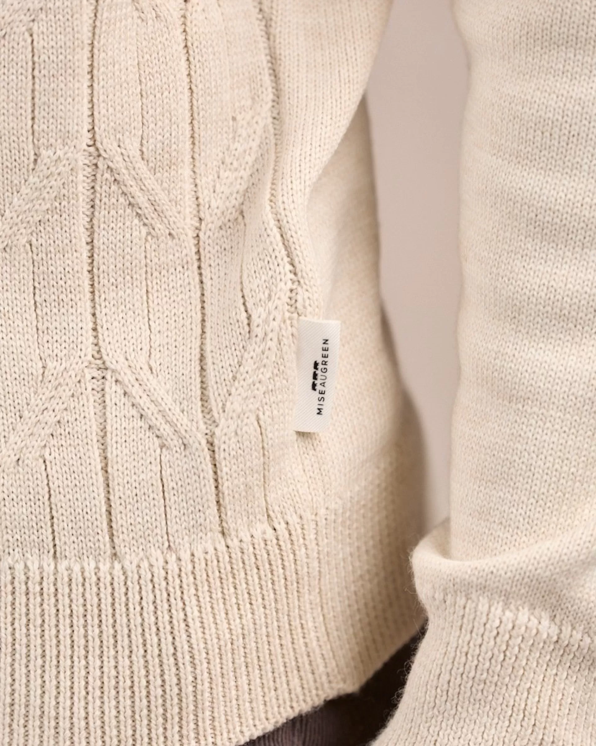 Idéal pour un style soigné, ce pull à col rond est une pièce de choix à posséder dans son vestiaire ! Ce modèle en laine mérinos et acrylique est confortable, robuste et respirant. Réalisé en maille torsadée, il possède une texture prononcée qui fait toute la différence. Des détails côtelés bordent le bas, les poignets et le col. Son coloris beige clair convient aussi bien pour une tenue urbaine chic qu’un look décontracté !