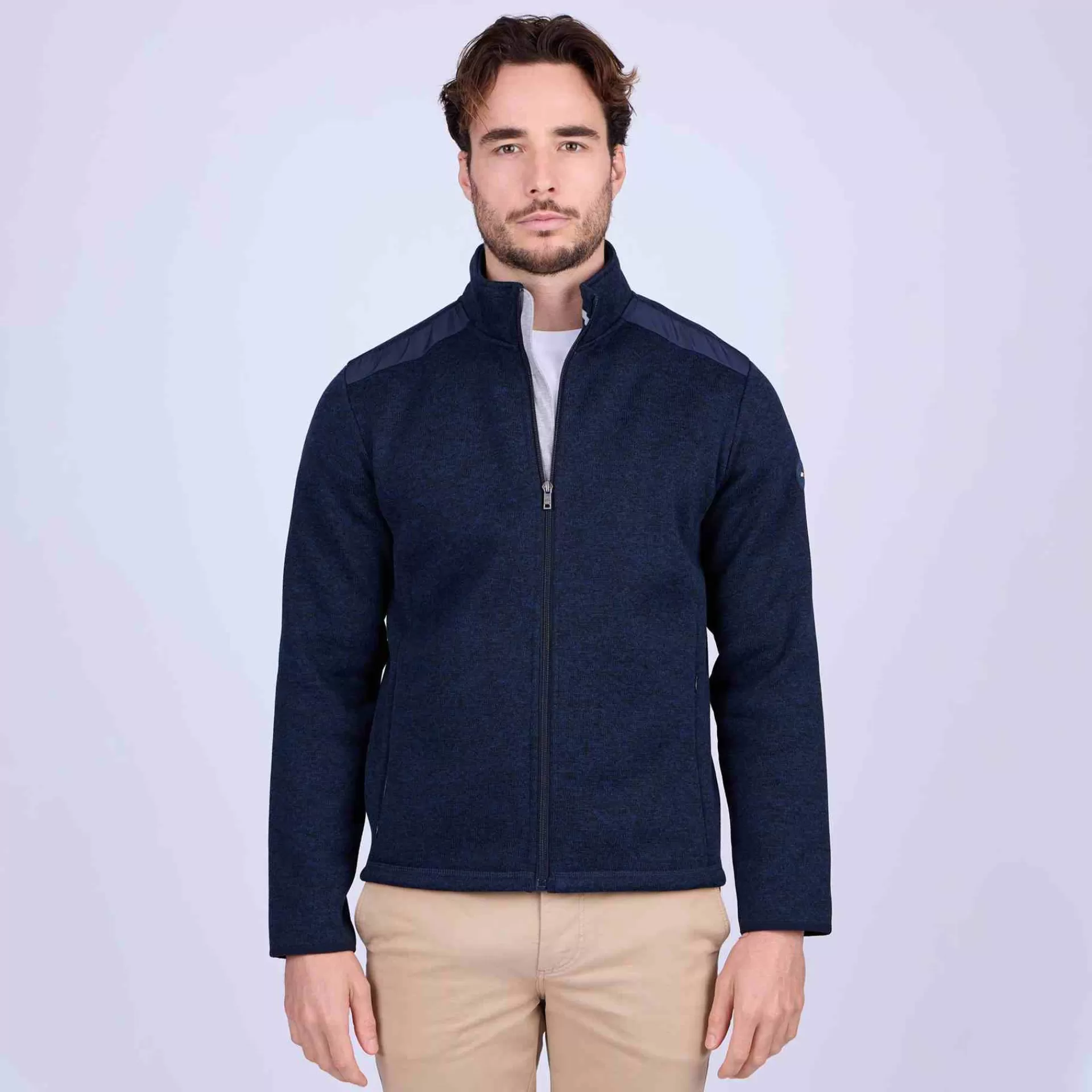 Pour vous protéger du froid avec chic, misez sur ce blouson polaire ! Son atout mode : son col camionneur et ses détails contrastés au niveau des épaules. Confectionné entièrement en polyester, ce modèle pour homme présente une coupe droite et un coloris bleu marine facile à vivre. Il est complété par deux poches latérales zippées, une fermeture éclair et un patch Mise au Green.