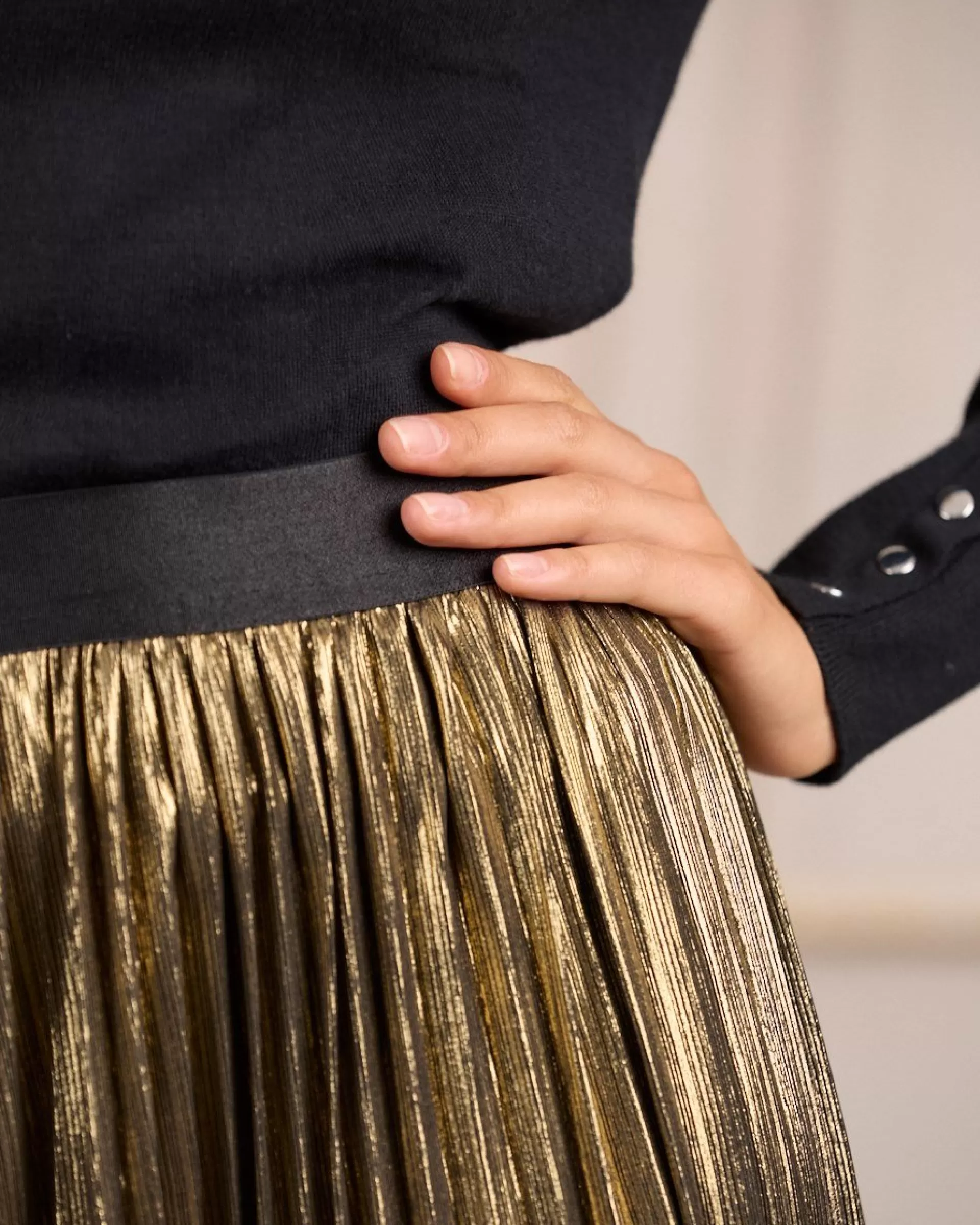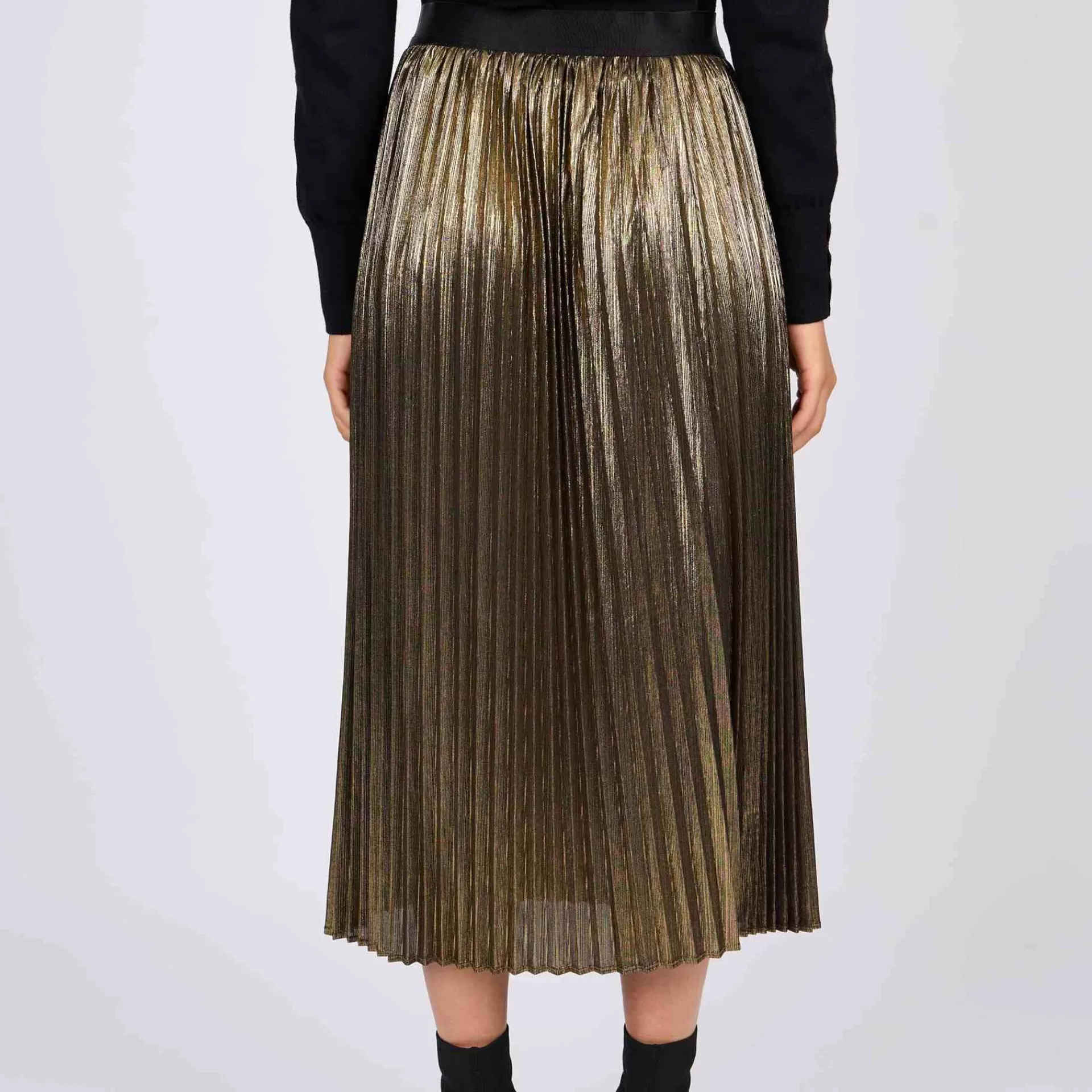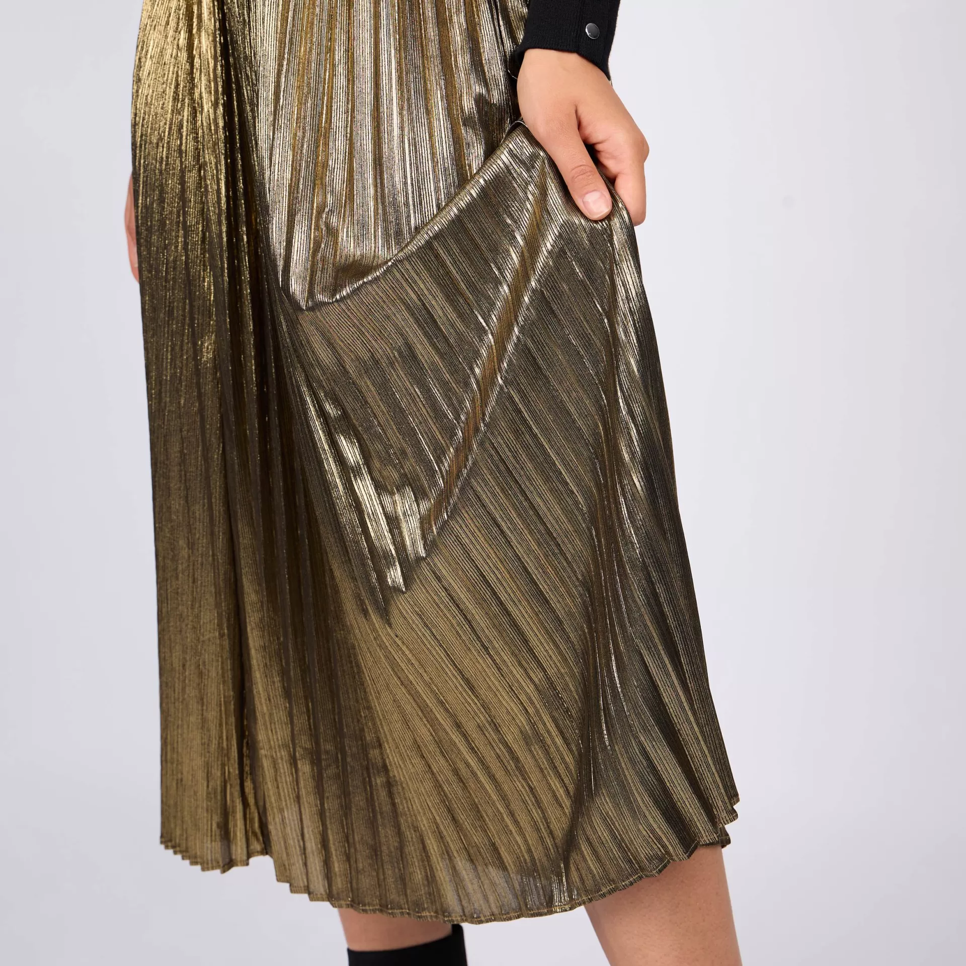 Pour dynamiser un look, laissez-vous séduire par cette jupe longue dorée ! Grâce à son tombé fluide, sa taille élastique et sa conception taille haute, elle apporte soutien et confort. Son tissu lumineux et sa finition plissée sublimeront votre silhouette avec élégance ! Portez-la en toute saison avec une paire de boots pour une tenue féminine et sophistiquée.