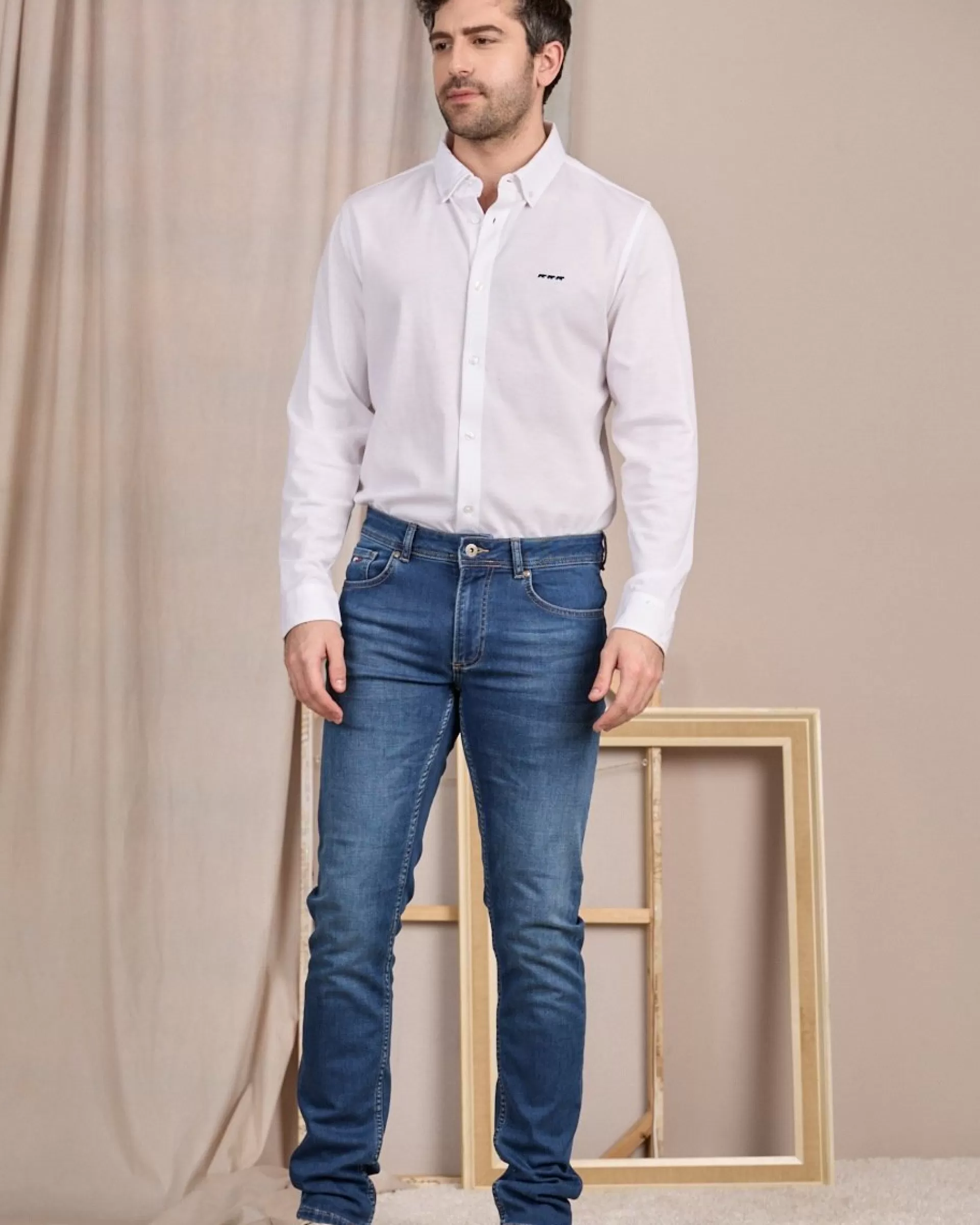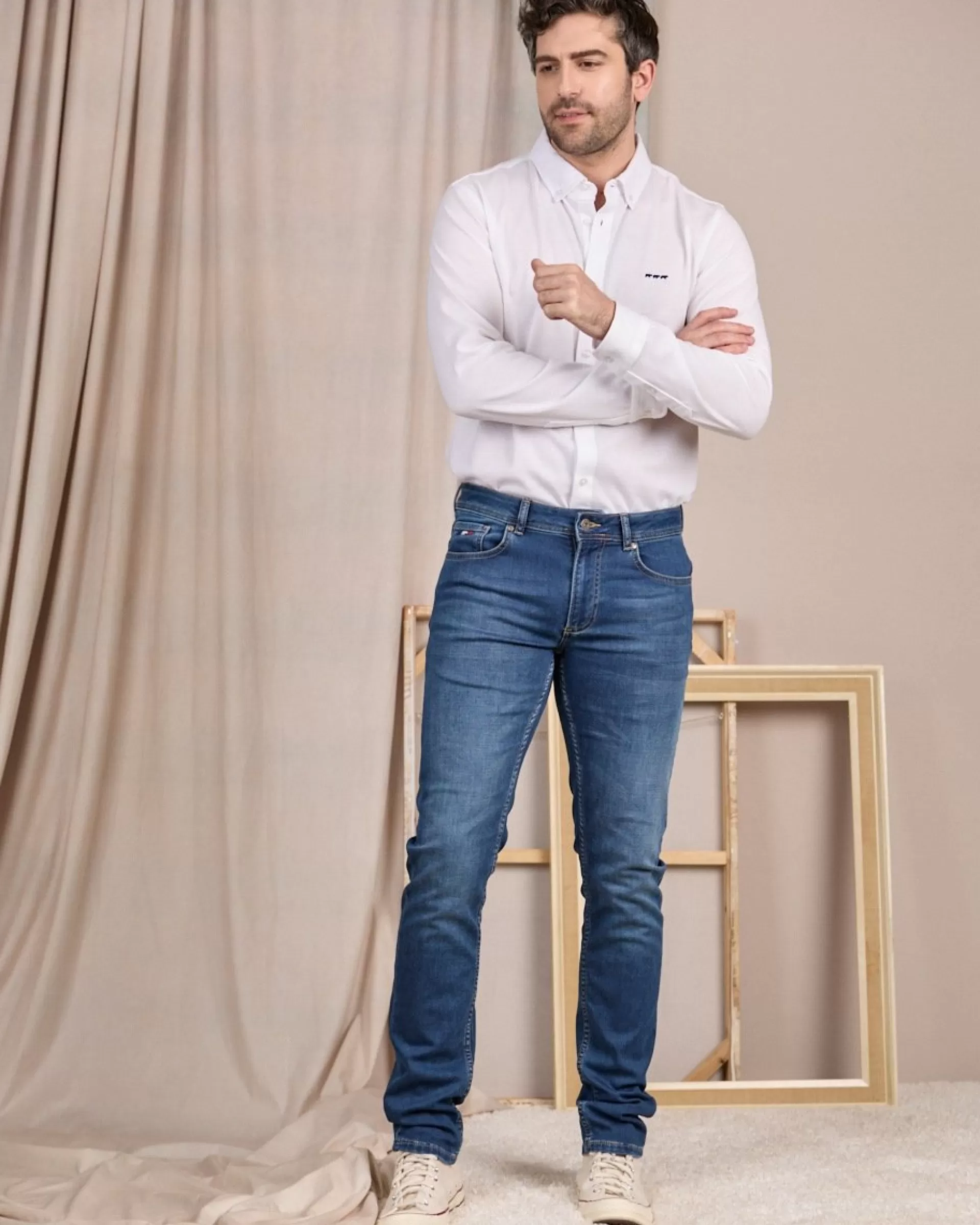 Connaissez-vous le jogg-jean ? Moderne et tendance, ce basique associe le confort du jogging avec le style du jean. Pour un look impeccable, ce modèle a été pensé avec une coupe ajustée flatteuse, quatre poches et un jacron Mise au Green. Ce qu’on adore ? Sa matière en coton et polyester avec une pointe d’élasthanne qui offre une totale aisance de mouvement. Avec son coloris bleu médium, vous pourrez l’associer à l’infini avec des styles variés !