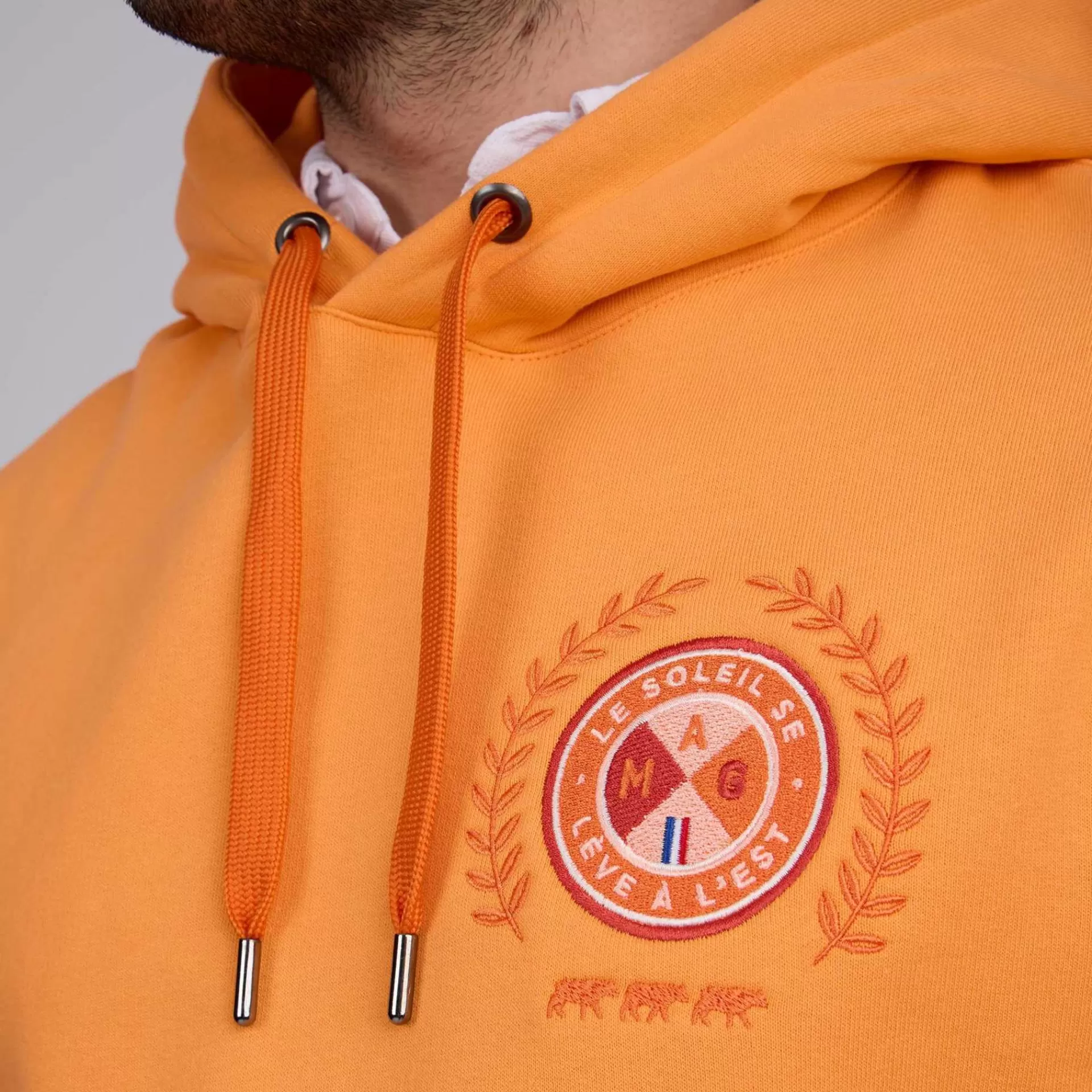 Pour un style décontracté réussi, le hoodie est LA pièce à posséder ! Avec son design tendance et son coloris orange, ce modèle pour homme s’associe facilement avec un pantalon ou un jogging. Selon vos envies, portez-le seul ou superposez-le avec un tee-shirt ! Des finitions soignées rehaussent ce modèle comme des longs cordons de serrage, une capuche et un patch brodé sur la poitrine. Conçu avec du coton, il se distingue par sa douceur et sa sensation de confort.