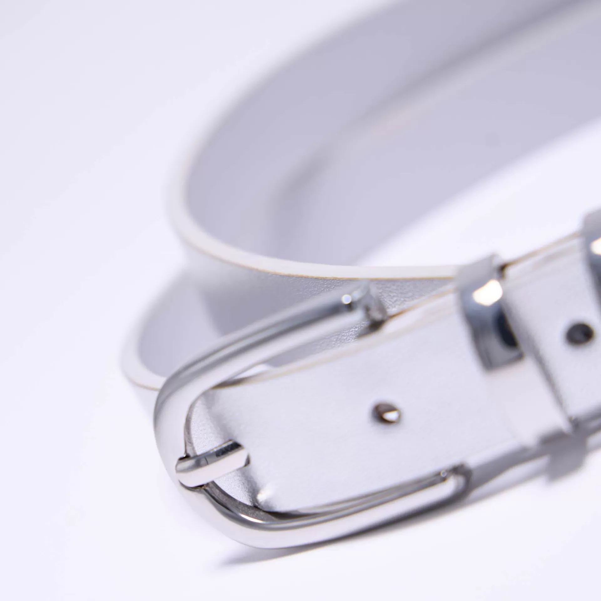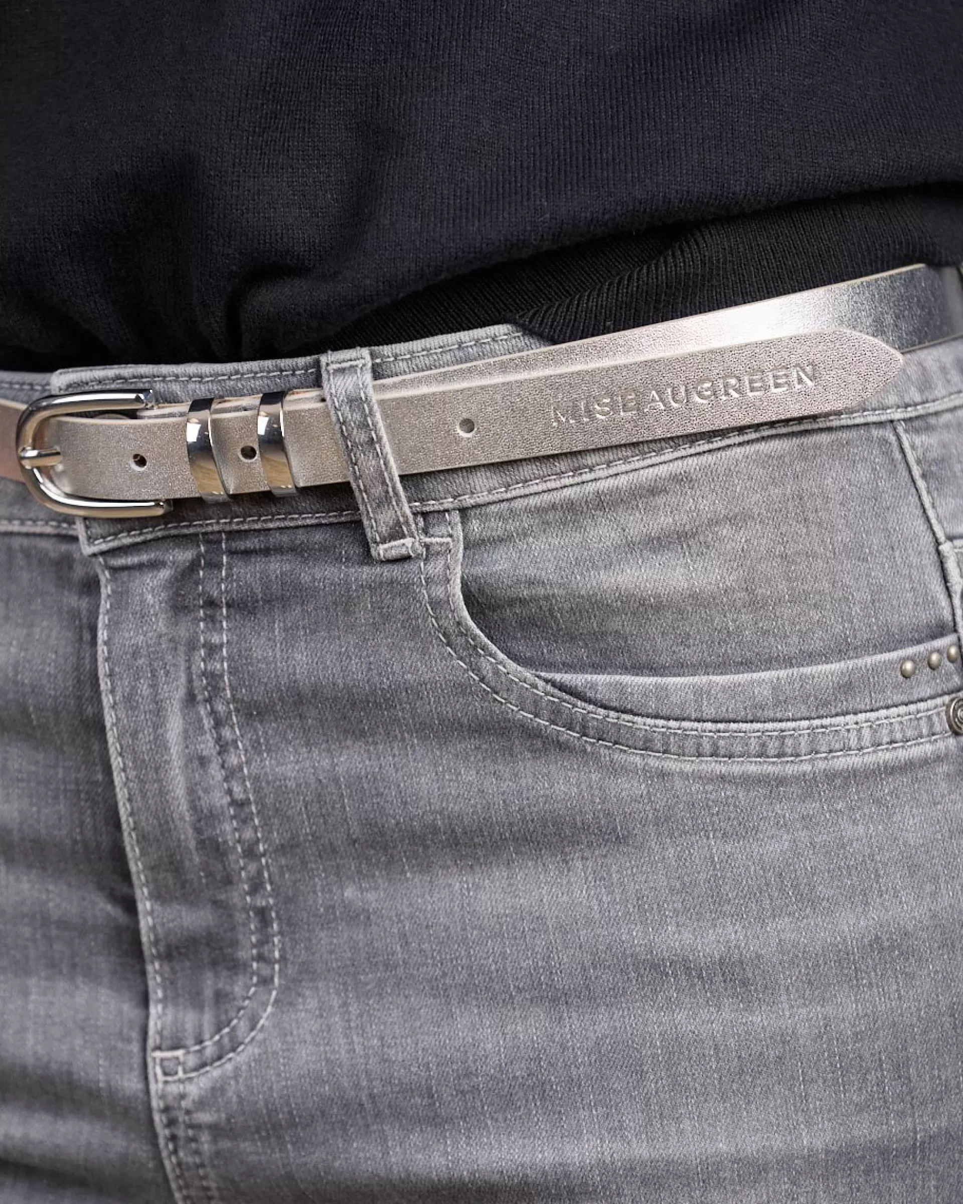 Chic et intemporelle, cette ceinture fine argentée est l’accessoire incontournable de votre garde-robe ! Véritable bijou, elle est sublimée par une boucle dorée et une inscription Mise au Green. Confectionné en cuir, ce modèle polyvalent se porte aussi bien avec un jean qu’une robe pour souligner votre taille. Misez sur son design élégant et épuré pour compléter toutes vos tenues.