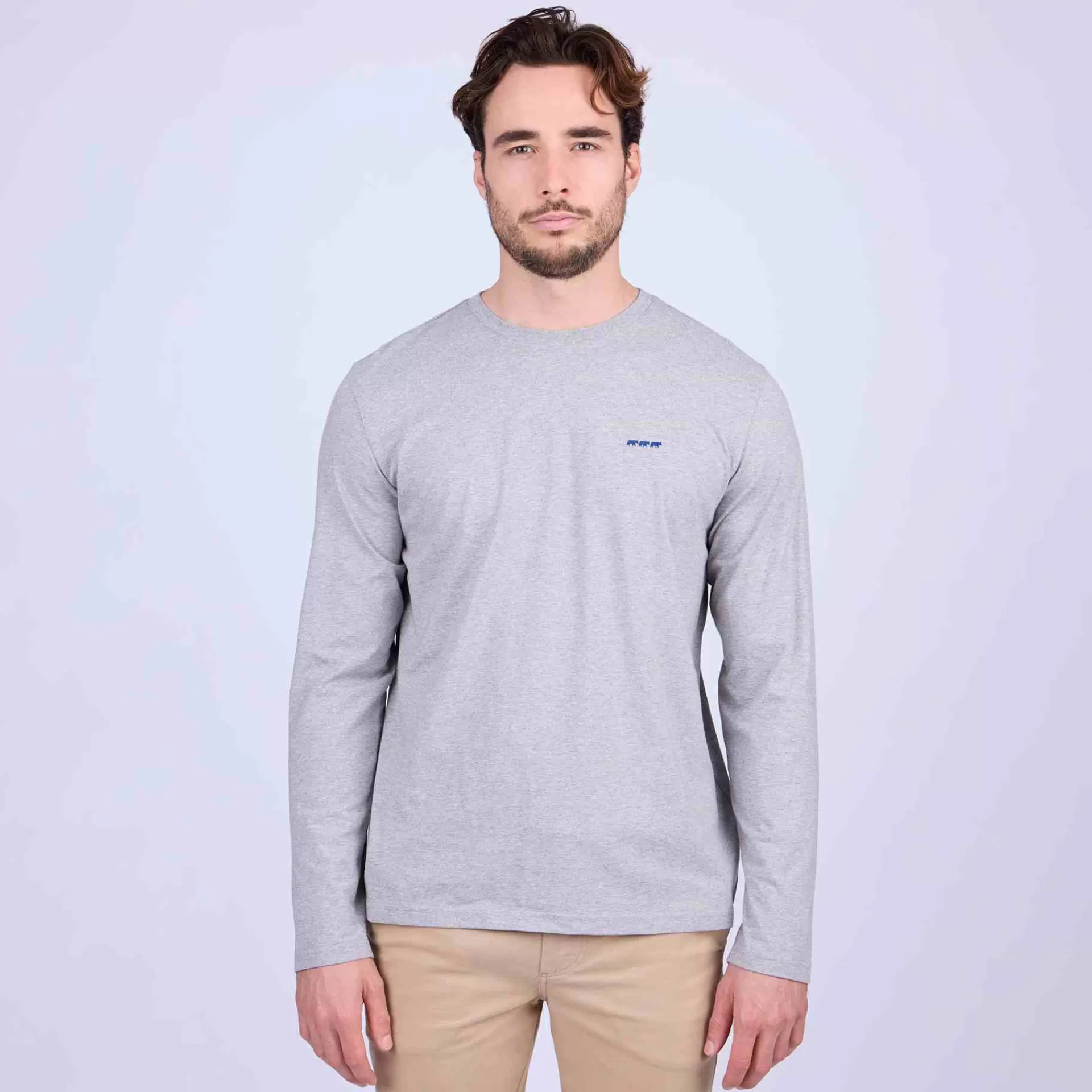 Basique du vestiaire masculin, ce tee-shirt gris chiné à manches longues a tout pour plaire ! Offrez-vous un moment de douceur grâce à sa matière en coton. Polyvalent, il est facile à coordonner et s’adapte à toutes les occasions. Avec lui, jamais de faute de goût ! Cette pièce est dotée d’une coupe droite soignée et d’un logo brodé Mise au Green.