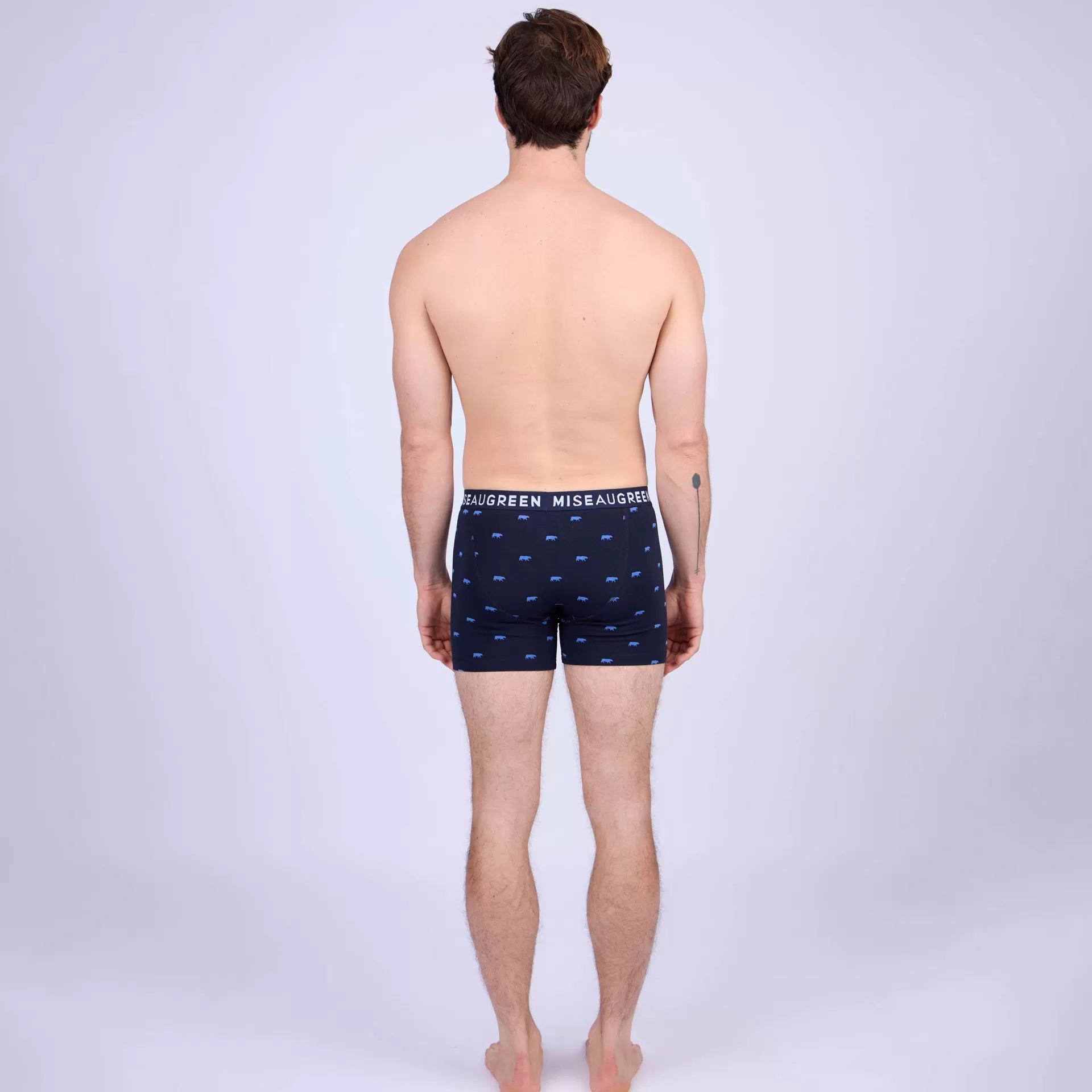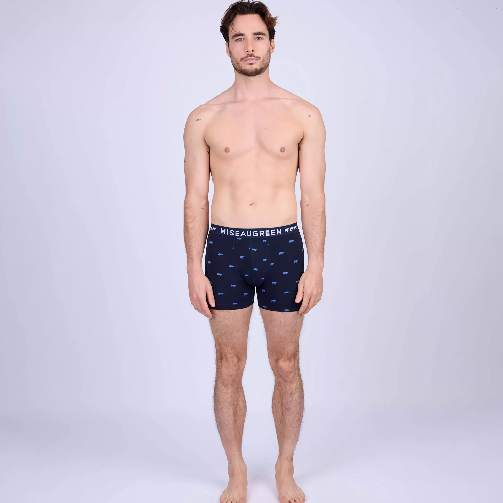 Réalisé en coton avec une pointe d’élasthanne, ce boxer est à la fois doux, résistant et respirant. Pour assurer un maintien parfait du matin au soir, il possède une ceinture élastiquée et logotée. Avec son imprimé bleu marine Mise au Green exclusif, il sera votre allié fantaisie au quotidien. Un sous-vêtement à (s’)offrir d’urgence pour un confort permanent !