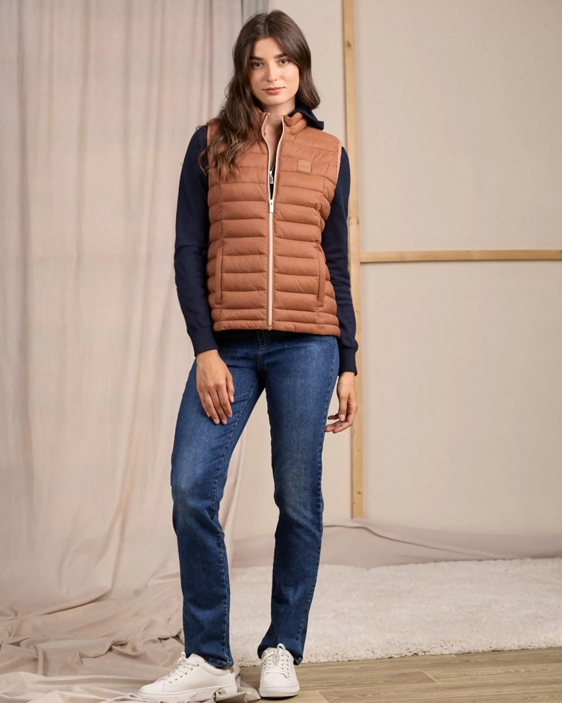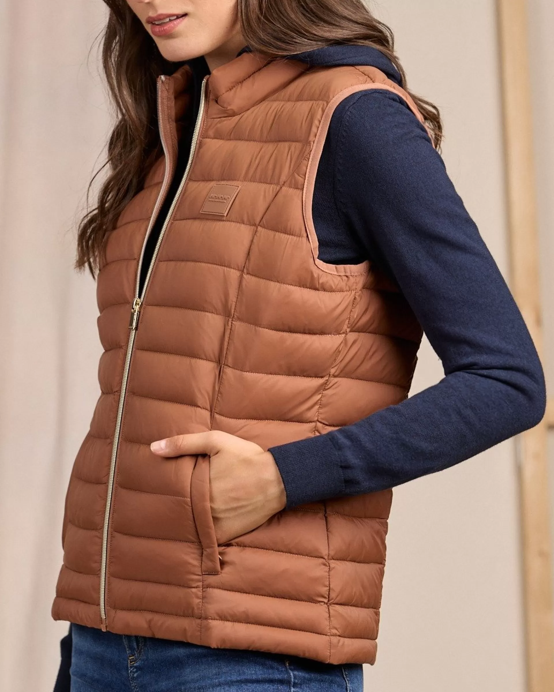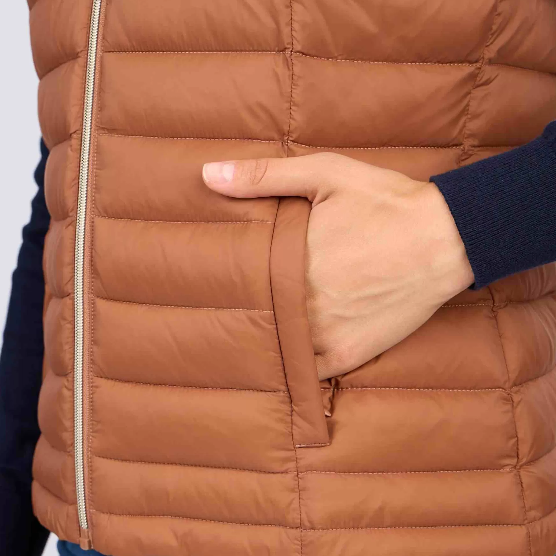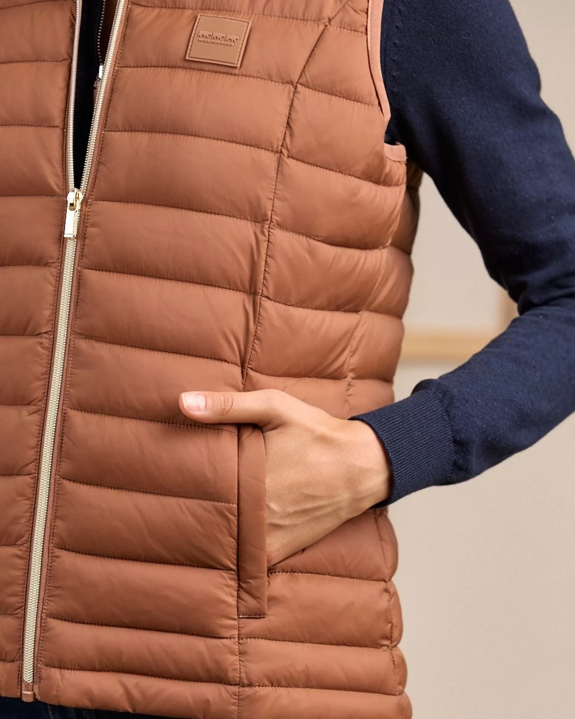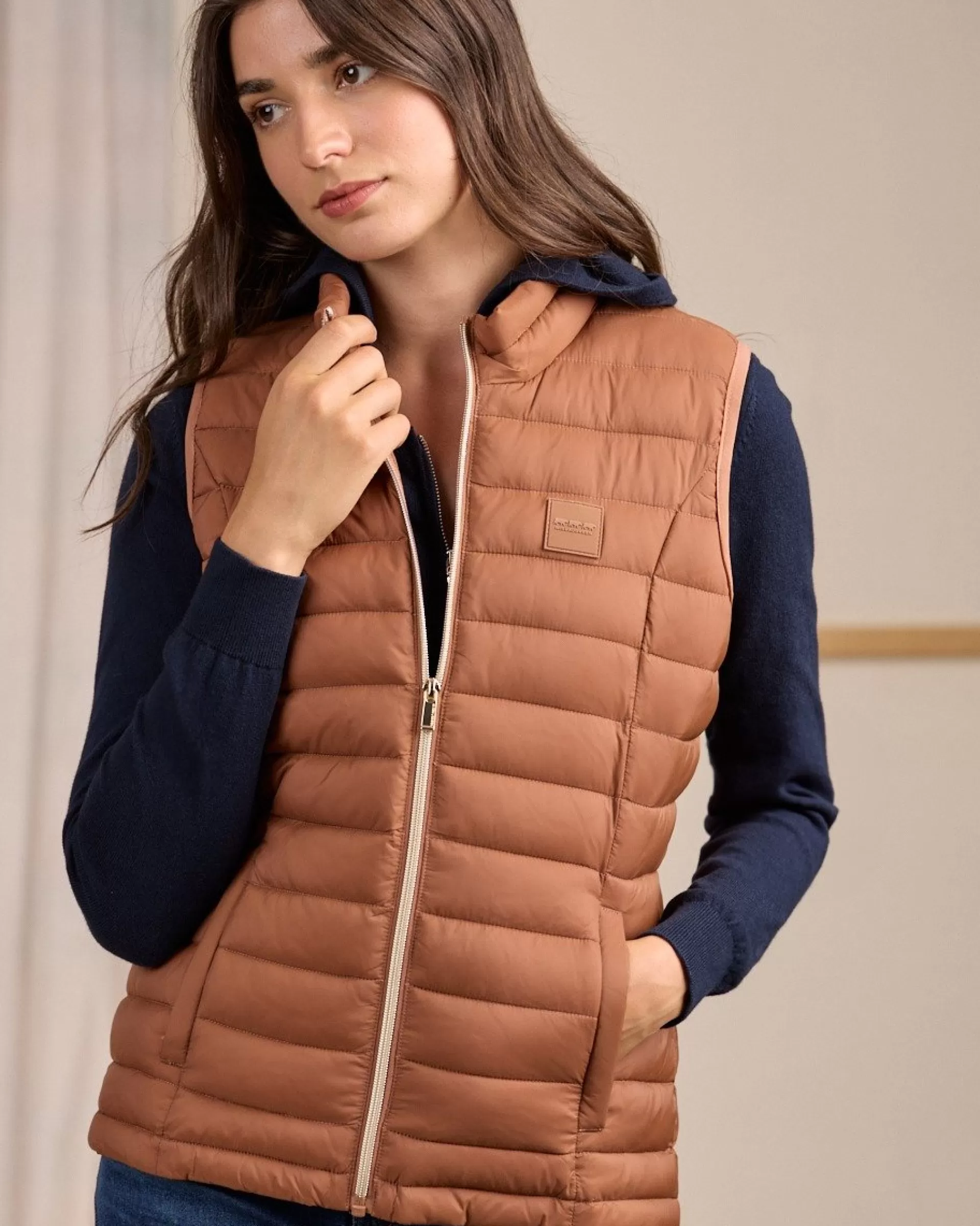 Réalisée en polyamide, cette doudoune sans manches résiste aux intempéries ! Avec son coloris uni marron et son effet matelassé, elle vous aide à adopter une allure décontractée et sophistiquée. Le détail qui fait la différence ? Sa fermeture éclair dorée. Deux poches latérales et un badge signature complètent cette pièce épurée et polyvalente. Pour ajouter du volume à votre tenue, portez-la par-dessus votre pull ou votre tee-shirt à manches longues favori.