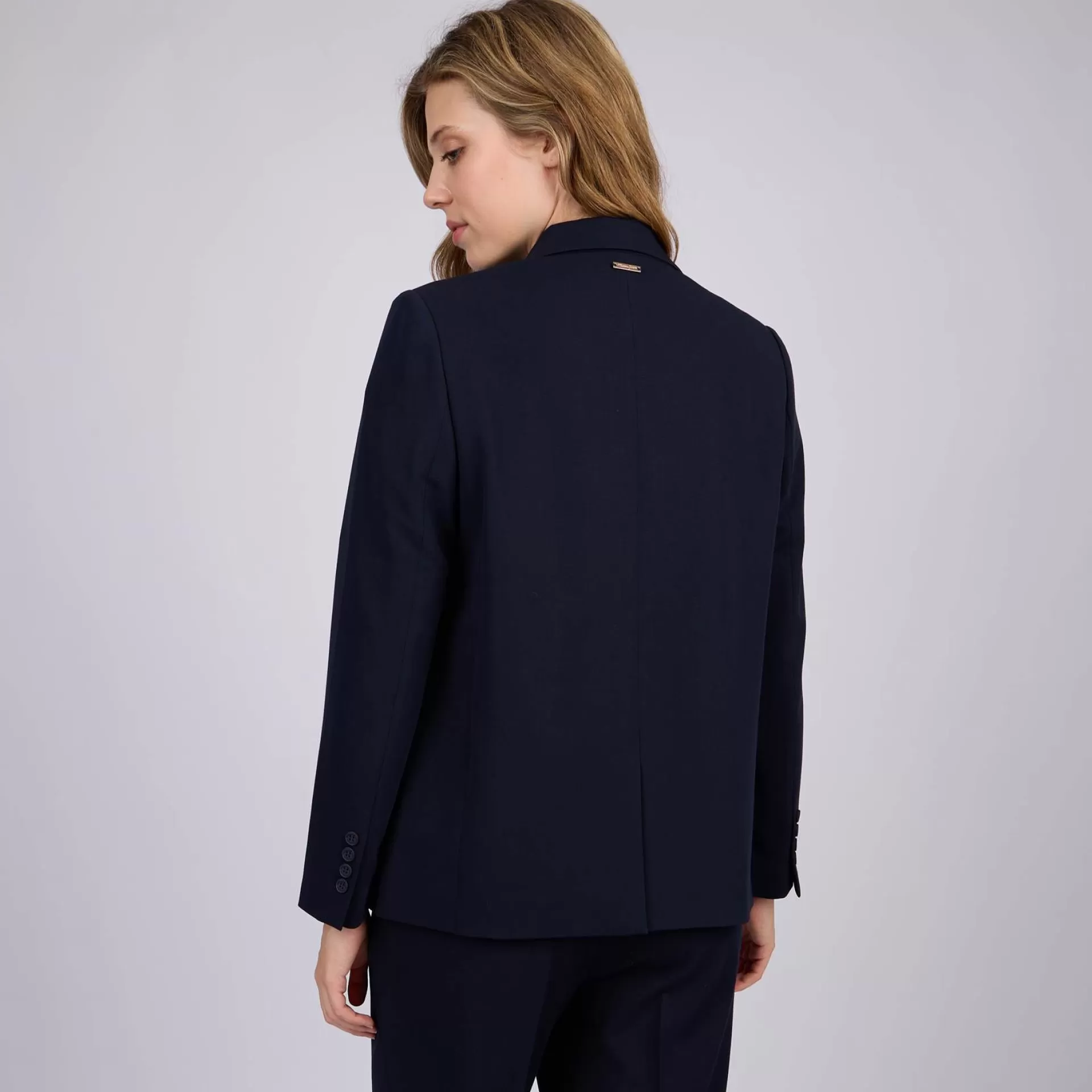 Arborez un style chic sans effort avec ce blazer pour femme. Facile à vivre, sa teinte bleu marine se prête à toutes vos envies ! Cette pièce indémodable insuffle de l’élégance à vos tenues, qu’elles soient formelles ou décontractées. Elle révèle un col tailleur, des manches longues, des poches passepoilées, des bas de manches à quatre boutons et une fente d’aisance en bas du dos. C’est la veste idéale pour structurer votre silhouette !
