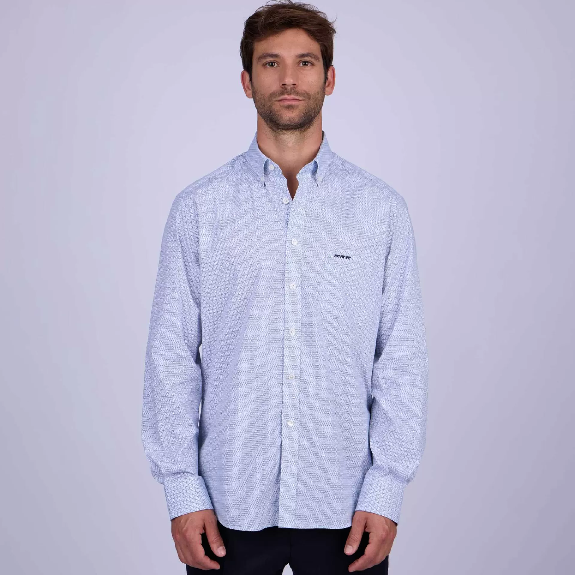 Pour une occasion formelle ou plus décontractée, enfilez cette chemise pour homme signée Mise au Green. Confectionnée en coton avec de l’élasthanne, elle vous garantit un confort infaillible. Pour un supplément de raffinement, ce modèle est habillé de micro-motifs ainsi que d’une poche plaquée sur la poitrine avec une broderie « 3 vaches ». À adopter sans attendre pour une allure élégante !