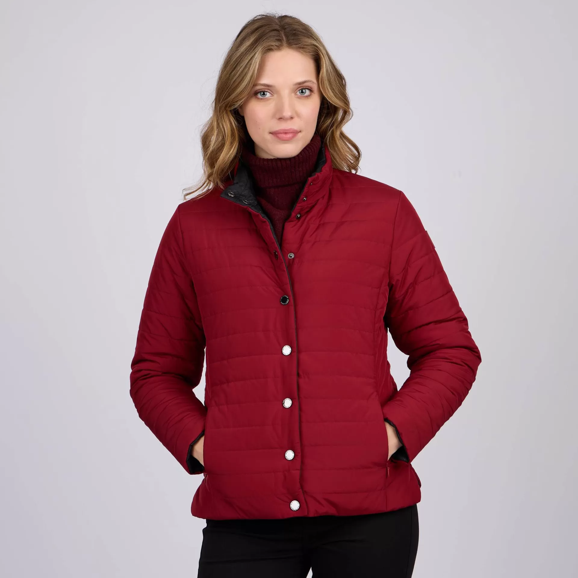 Envie de changer de style selon vos humeurs ? À la fois technique et esthétique, cette doudoune réversible s’adapte à vos envies. Chaude, légère et pratique : elle a tout bon ! Selon l’occasion, choisissez la face noire au fini déperlant ou la face bordeaux en tissu. Ce modèle présente une fermeture boutonnée, des poches latérales et un patch Mise au Green. Deux styles, deux ambiances, et un maximum de style !