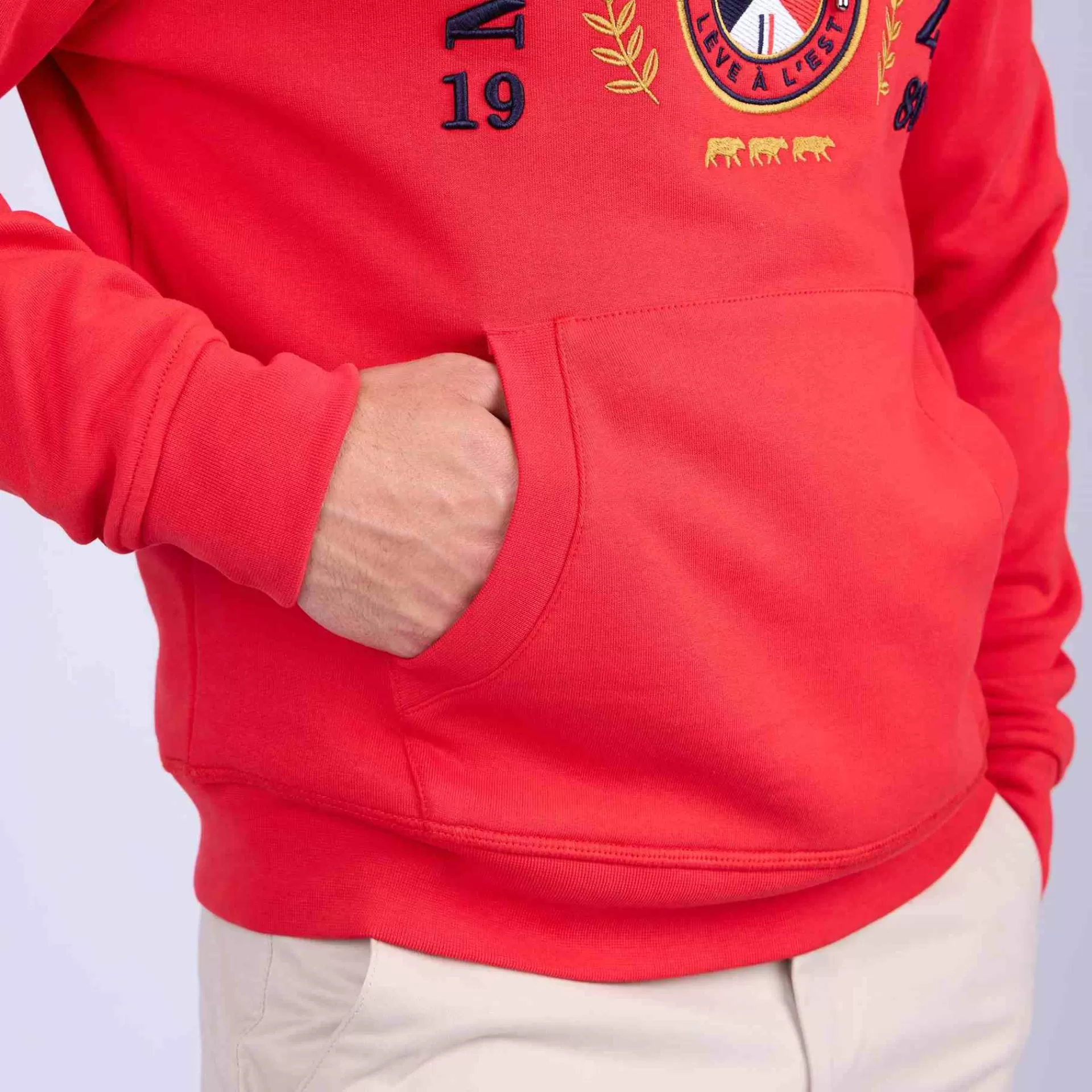 Le sweat à capuche est l’essentiel d’un week-end décontracté. Pour un style impeccable, découvrez notre modèle unisexe. Très tendance, il dispose d’une poche kangourou, de cordons de serrage et d’une coupe droite. Son coloris rouge et sa broderie Mise au Green font de lui un hoodie unique, à la fois moderne et élégant. labellisé OEKO-TEX® Standard 100 (VN020 184613 – OETI), sa matière en coton et polyester est agréablement douce. Enfilez-le pour un look casual au quotidien !