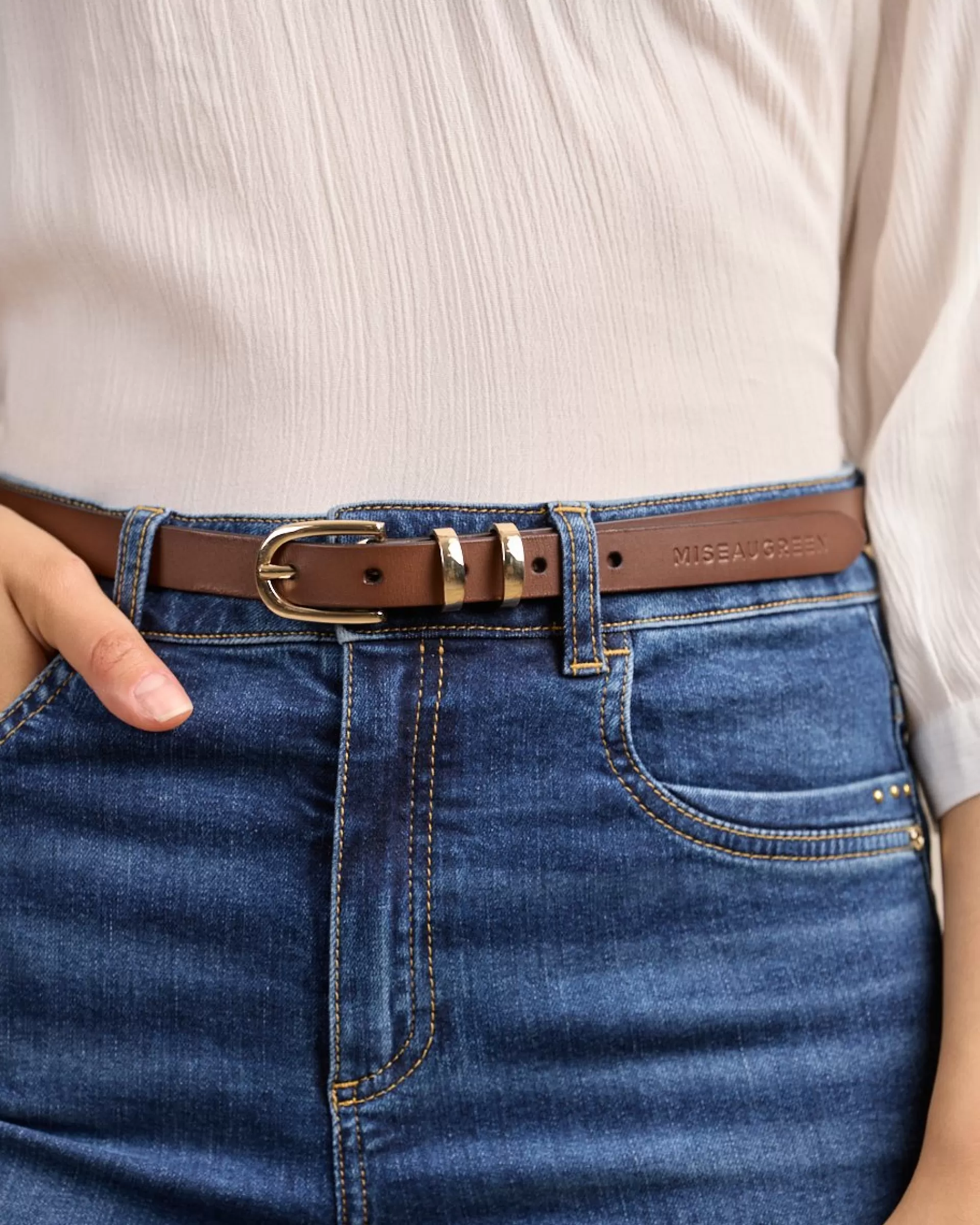 Chic et intemporelle, cette ceinture fine marron est l’accessoire incontournable de votre garde-robe ! Véritable bijou, elle est sublimée par une boucle dorée et une inscription Mise au Green. Confectionné en cuir, ce modèle polyvalent se porte aussi bien avec un jean qu’une robe pour souligner votre taille. Misez sur son design élégant et épuré pour compléter toutes vos tenues.