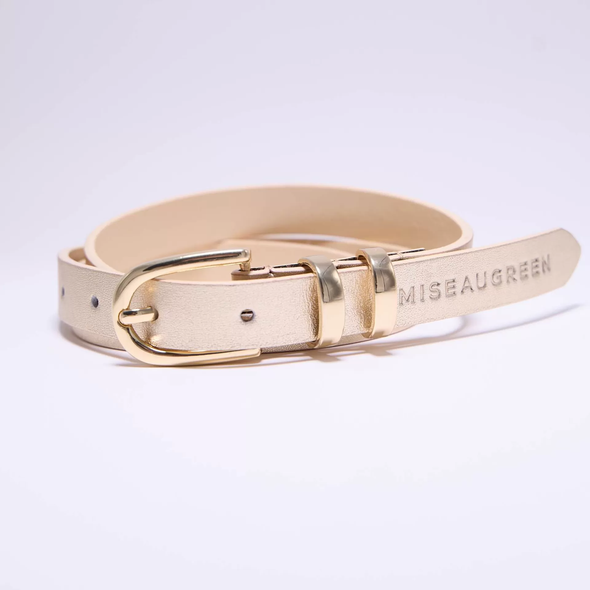 Chic et intemporelle, cette ceinture fine dorée est l’accessoire incontournable de votre garde-robe ! Véritable bijou, elle est sublimée par une boucle dorée et une inscription Mise au Green. Confectionné en cuir, ce modèle polyvalent se porte aussi bien avec un jean qu’une robe pour souligner votre taille. Misez sur son design élégant et épuré pour compléter toutes vos tenues.
